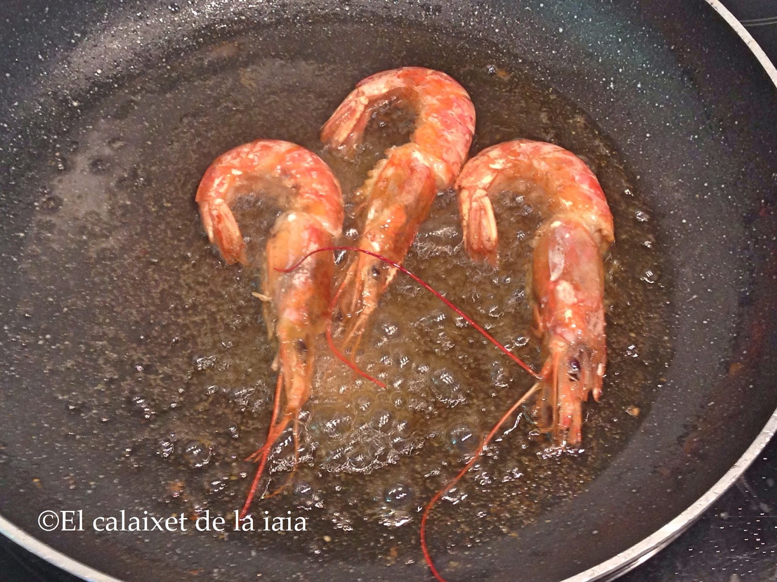 Procederemos a limpiar los langostinos, introduciendo por el lomo la punta de un palillo, que nos facilitará sacar el hilillo negro, que son los intestinos, y practicamos una abertura por la tripa, para facilitar extraer luego la carne al comerlo (ésto lo hago SIEMPRE cuando cocino marisco que irá a la mesa sin pelar)