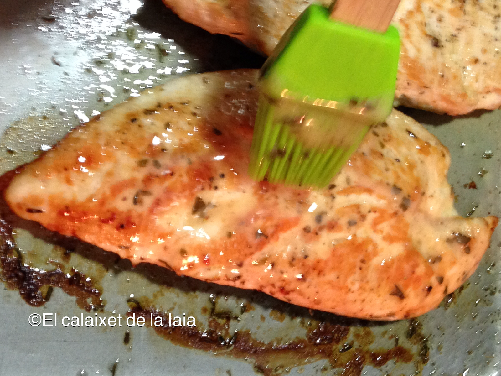 abrimos el horno y pincelamos la salsa por ámbos lados de los solomillos y dejamos diez minutos más