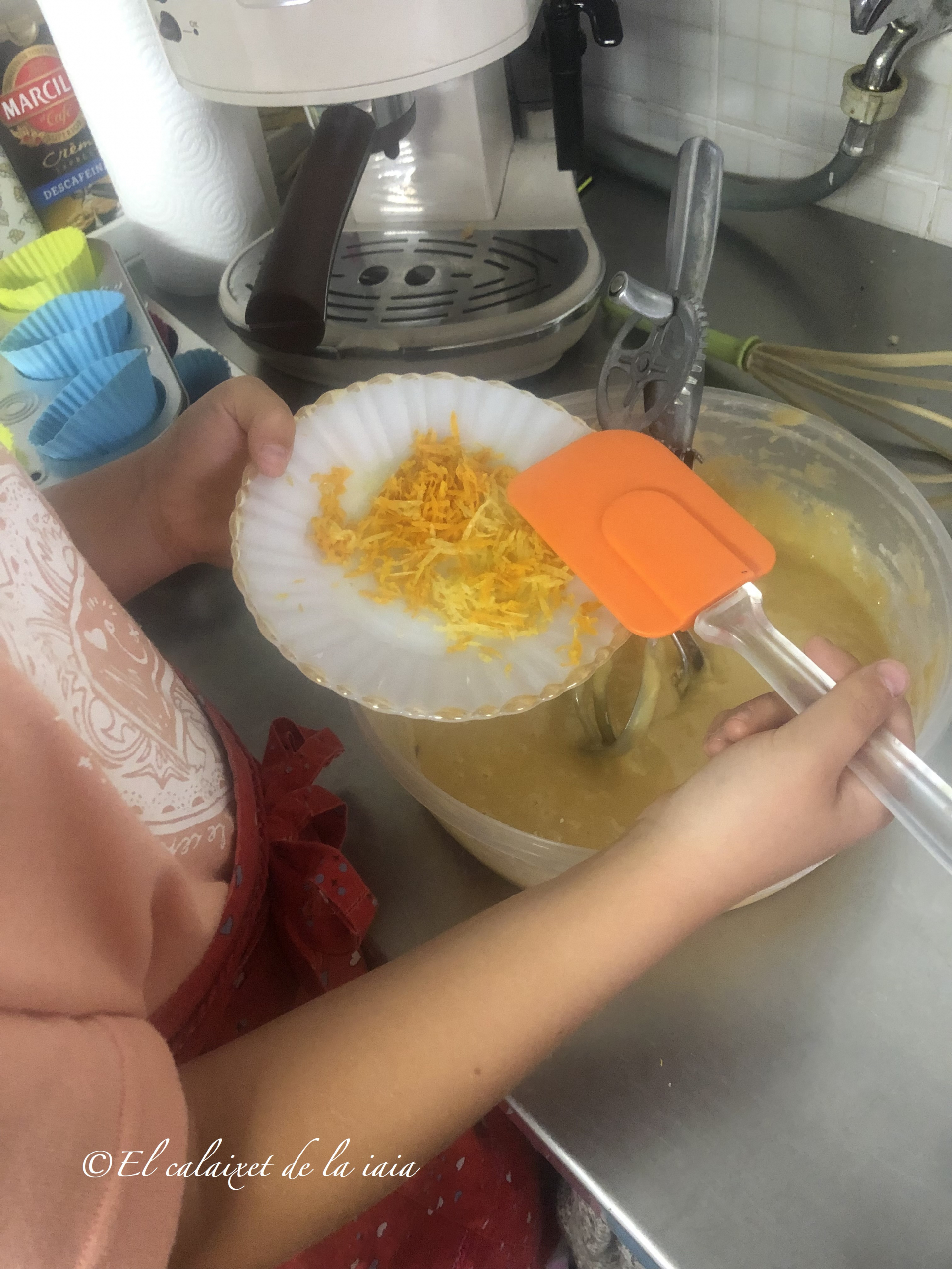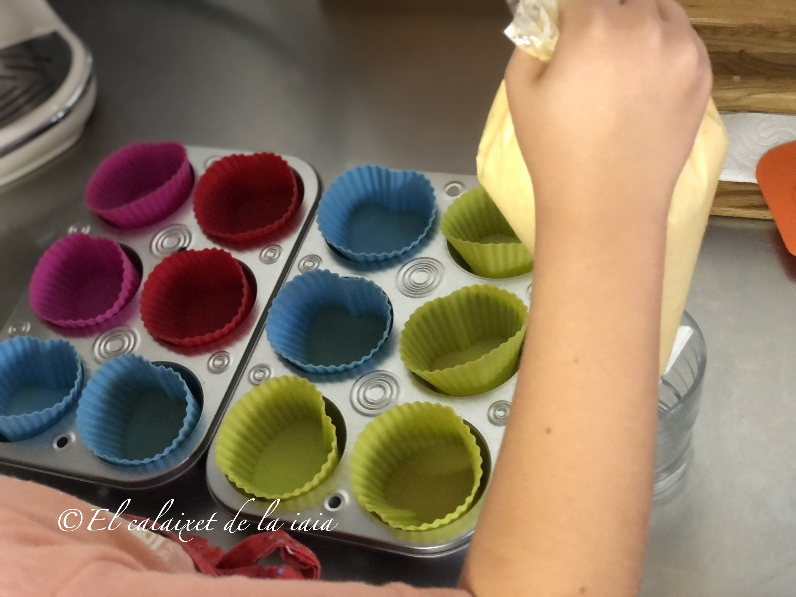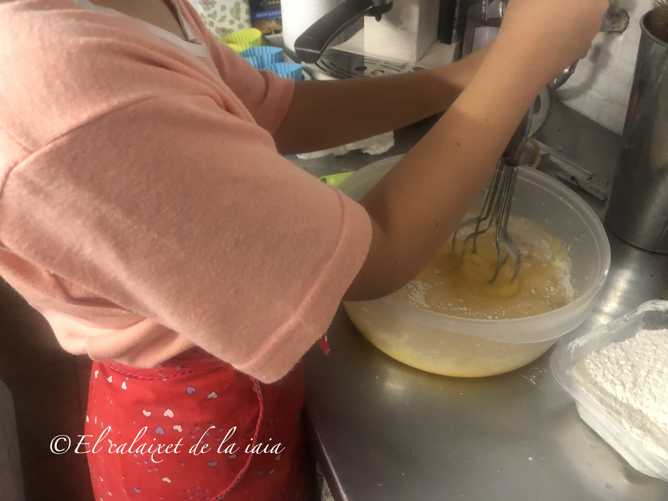 Estoy pasando unos días con mis princesas y enseguida han querido que preparáramos algo, he mirado en la despensa y hay arreglo para hacer las magdalenas de mi iaia, que le gustaba comer con el chocolate a la taza o un café con leche, peeero estas magdalenas les llamamos valencianas, y las hacemos en unos moldes o cápsulas alargados, pero aquí no tengo, solo los de silicona y con dos formas distintas, y no hay donde comprar otros moldes, ni res de res, así que hoy son valencianas redondas, manos a la obra 😉