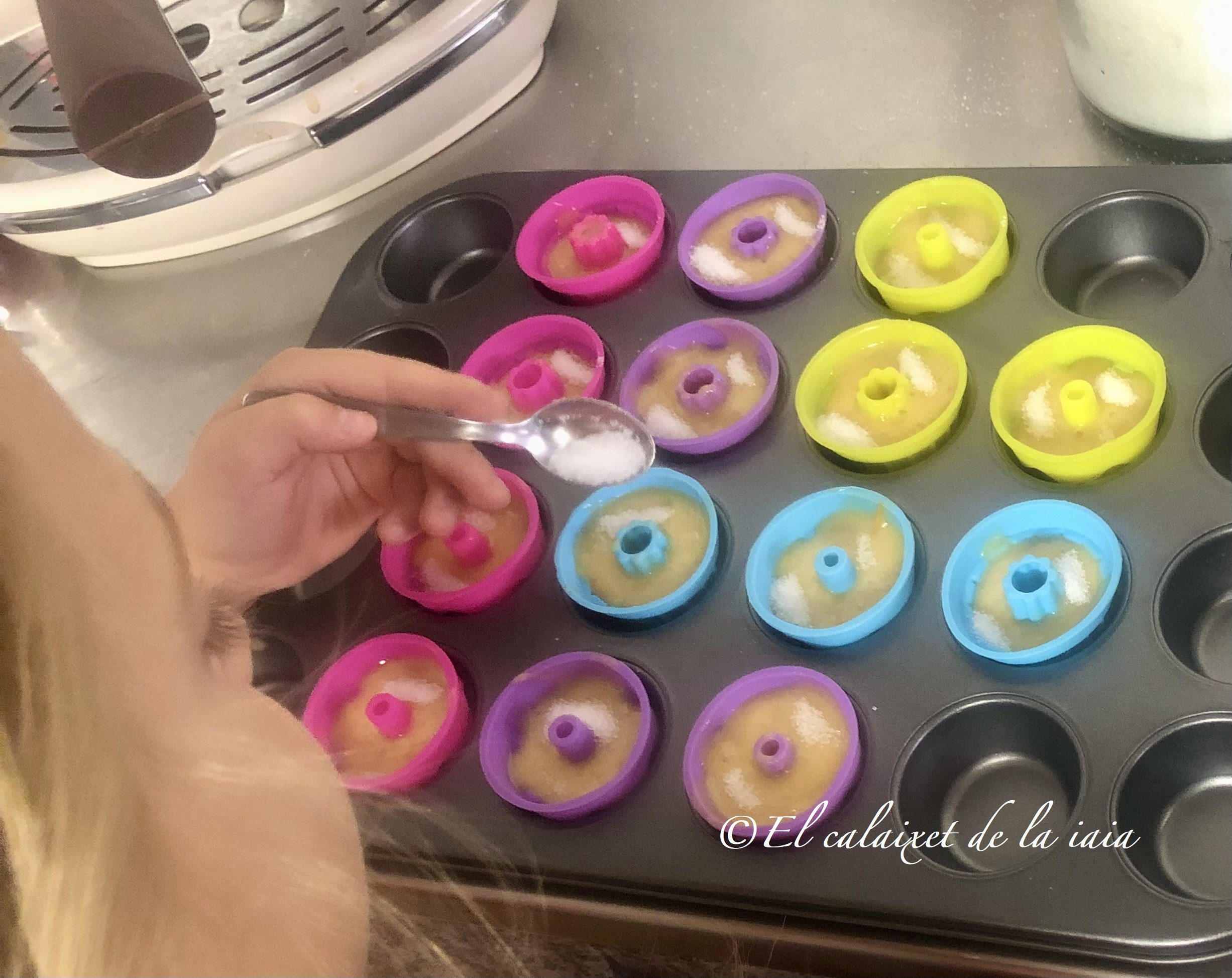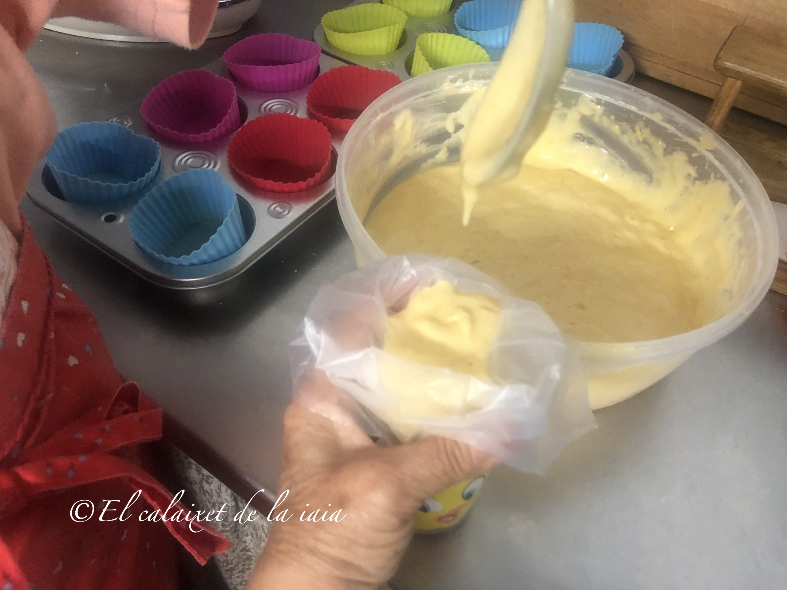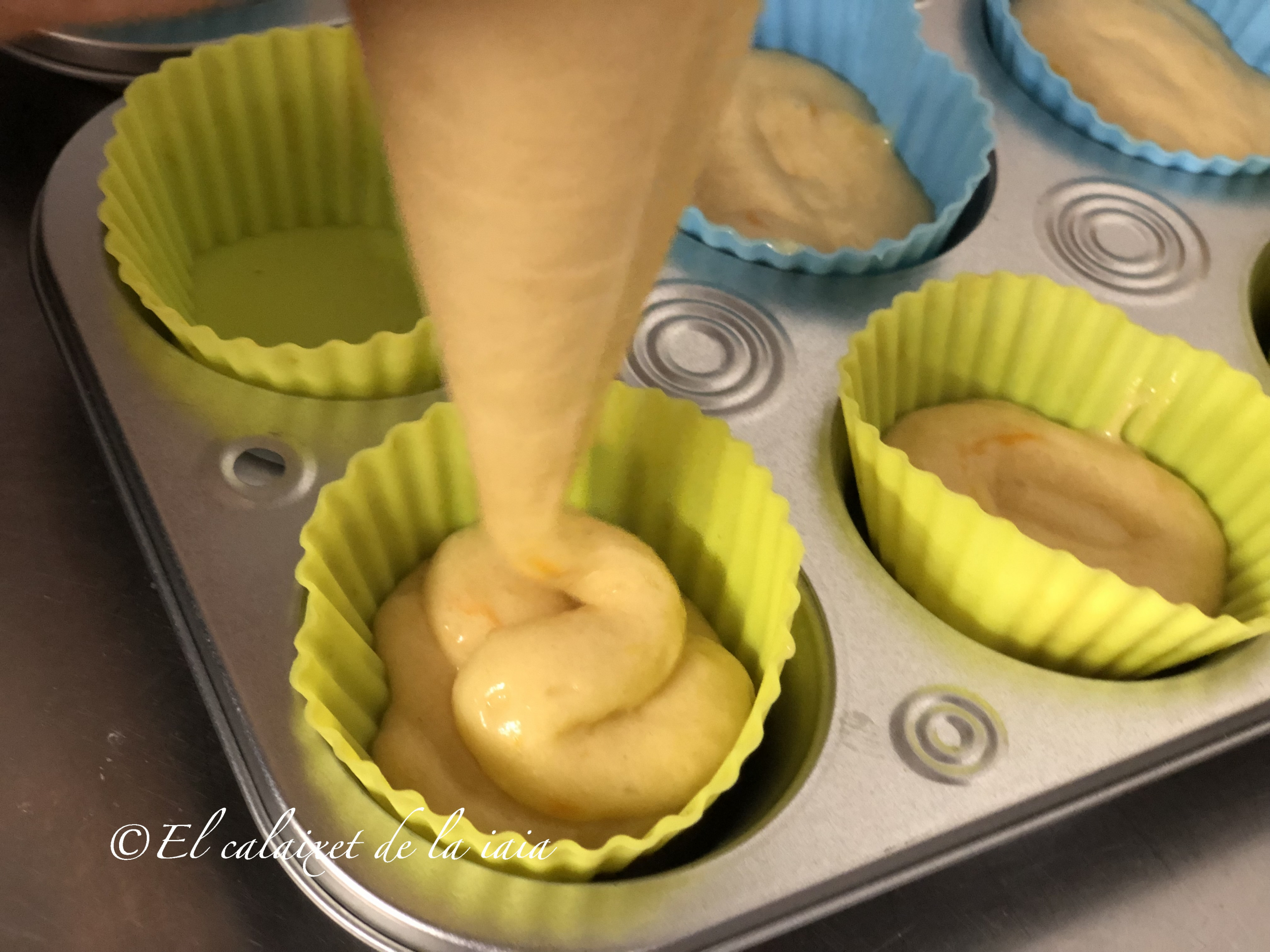 Estoy pasando unos días con mis princesas y enseguida han querido que preparáramos algo, he mirado en la despensa y hay arreglo para hacer las magdalenas de mi iaia, que le gustaba comer con el chocolate a la taza o un café con leche, peeero estas magdalenas les llamamos valencianas, y las hacemos en unos moldes o cápsulas alargados, pero aquí no tengo, solo los de silicona y con dos formas distintas, y no hay donde comprar otros moldes, ni res de res, así que hoy son valencianas redondas, manos a la obra 😉