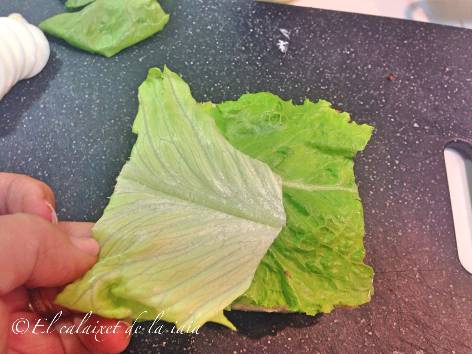 encima pondremos las hojas de lechuga romana (previamente lavada y bien escurrida)