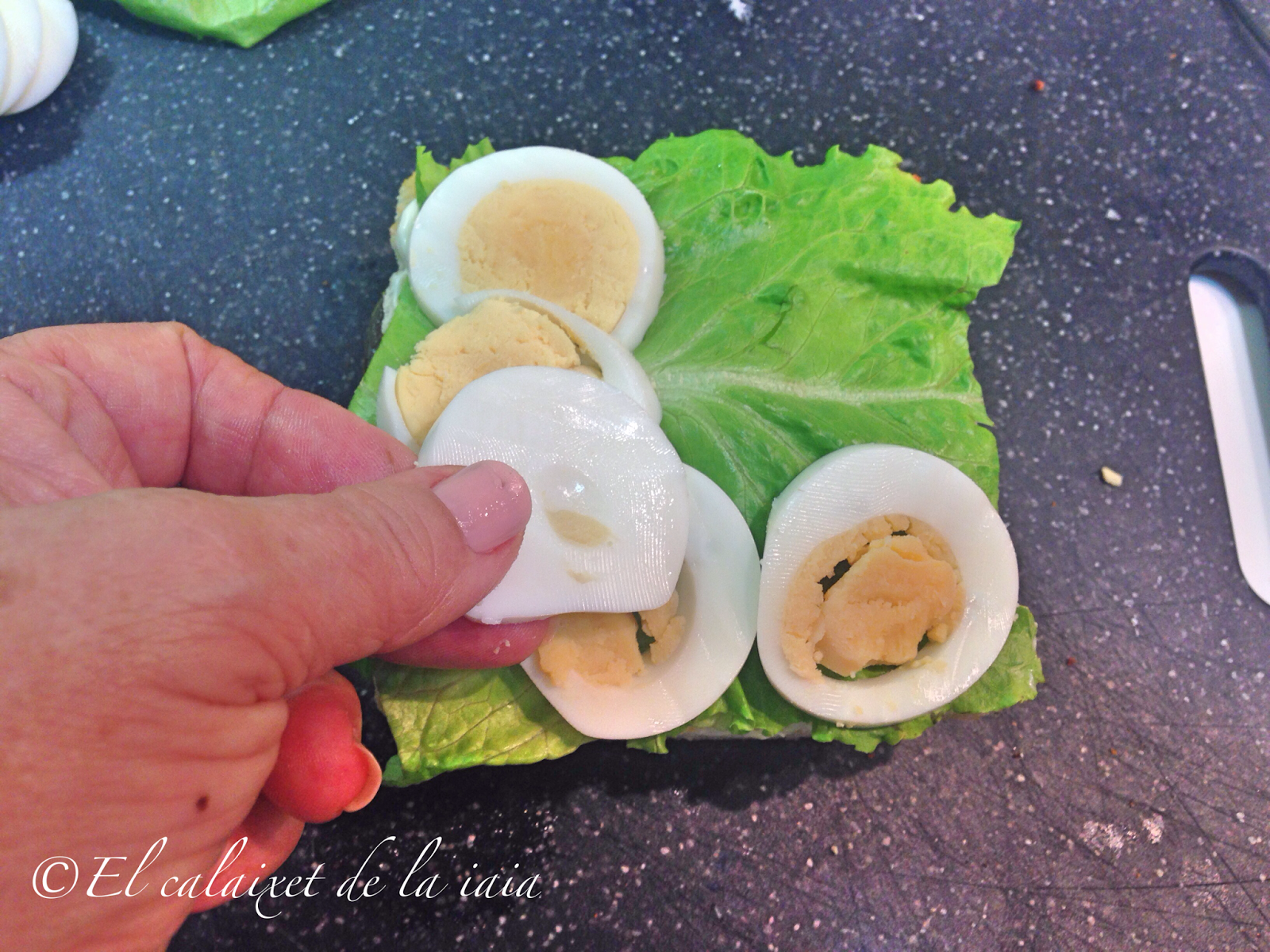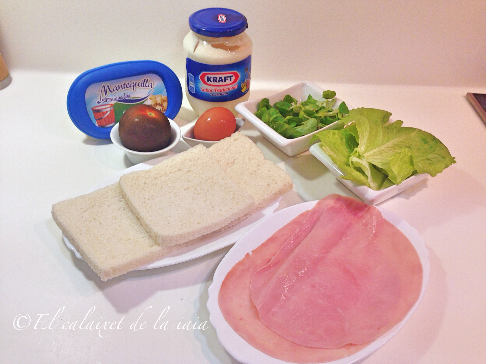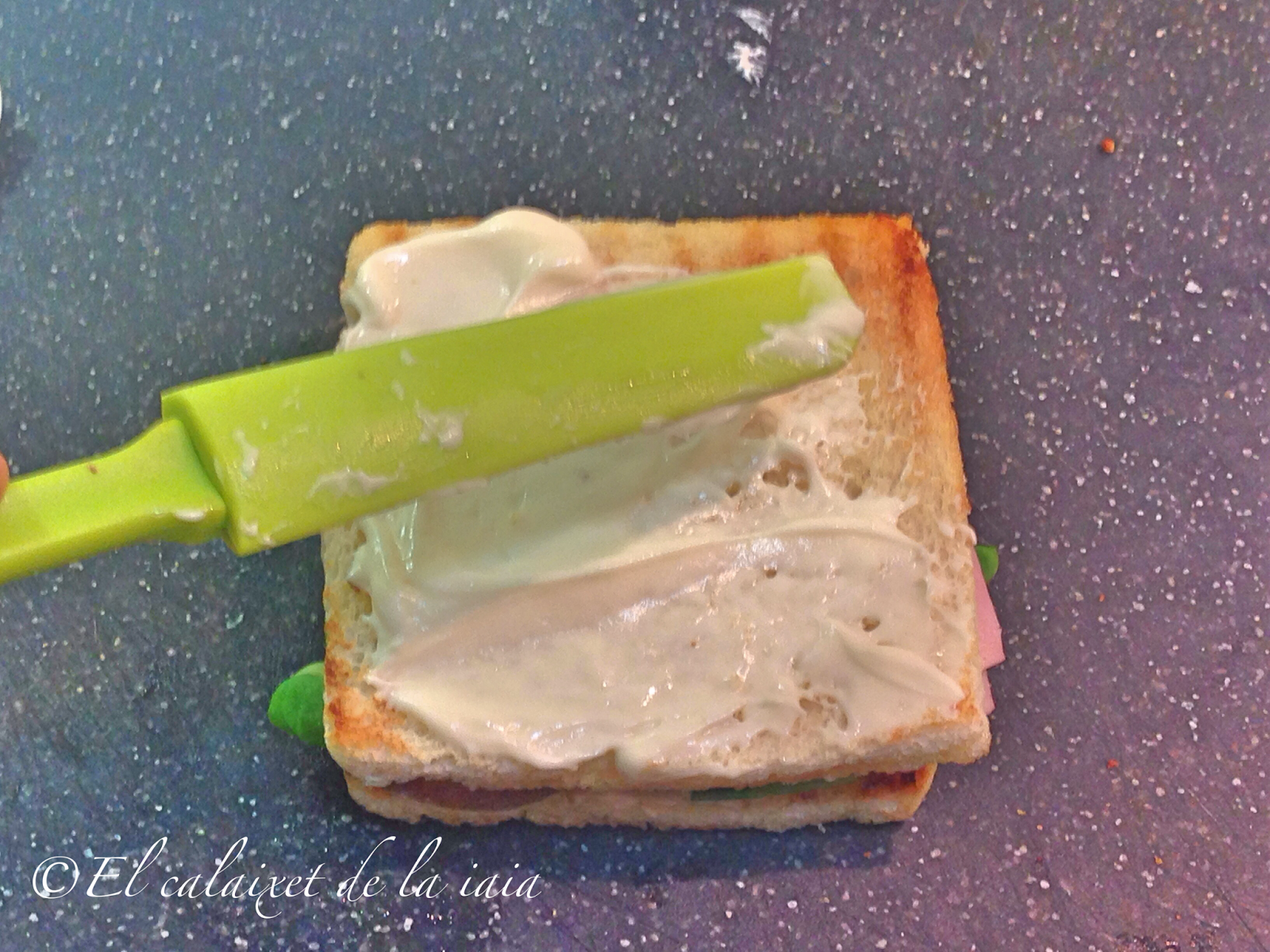 y finalizamos con la última tostada untada en la parte interior con otro poquito de mayonesa