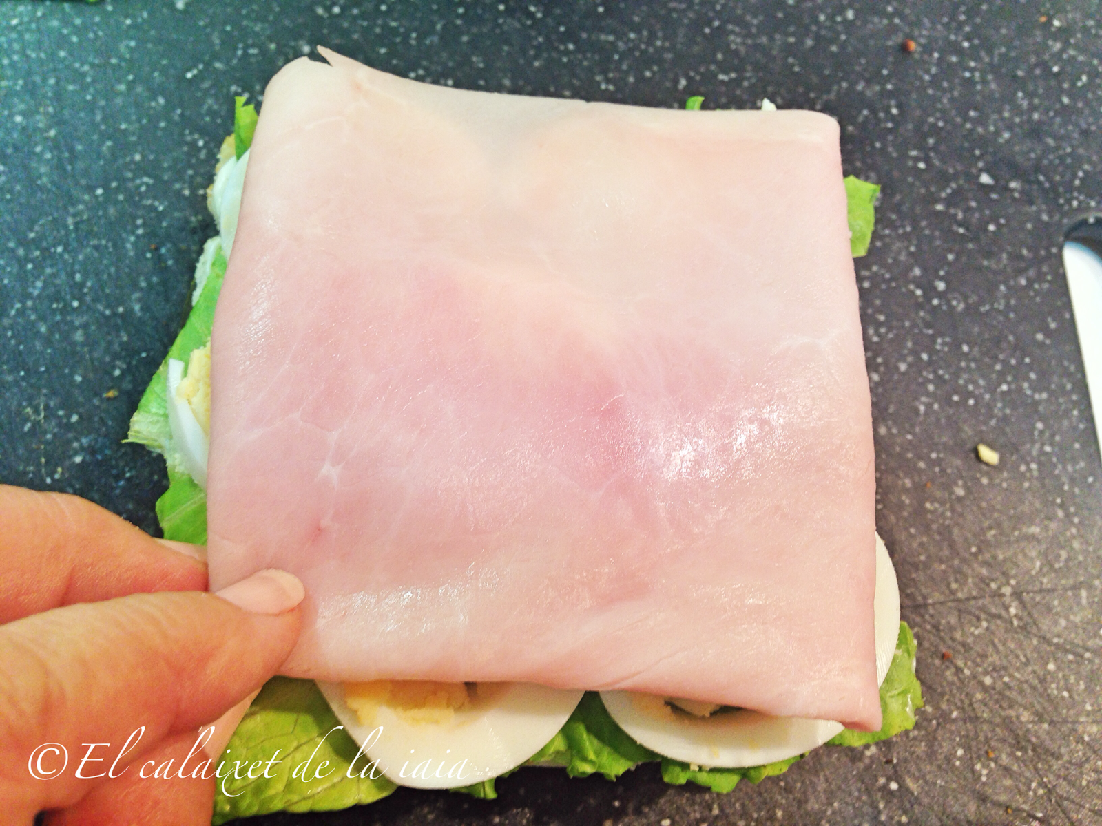 y lo cubrimos con otra tostada untada ligeramente con mayonesa