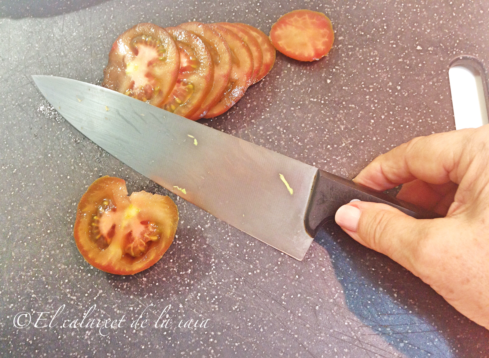 Mientras tanto lavamos y troceamos la lechuga y lavamos y partimos en rodajas el tomate. Hoy he usado de la clase kumato, que me encanta pero normalmente uso de pera, porque es mas carnoso