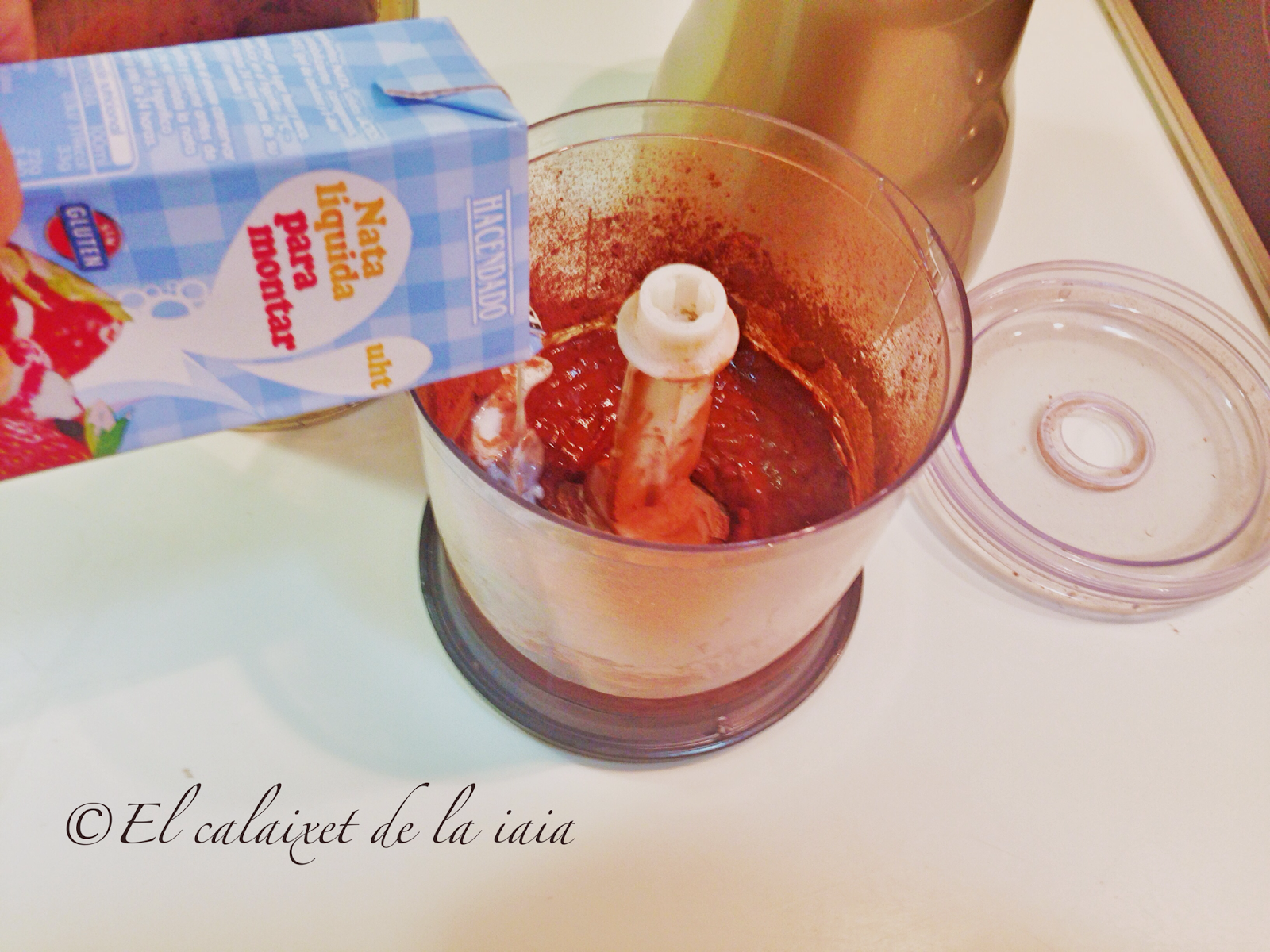 y opcionalmente, una cucharada de nata de montar, cema de leche o leche. Si quieres un helado vegano, no la añadas