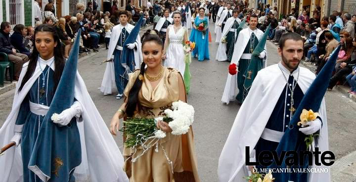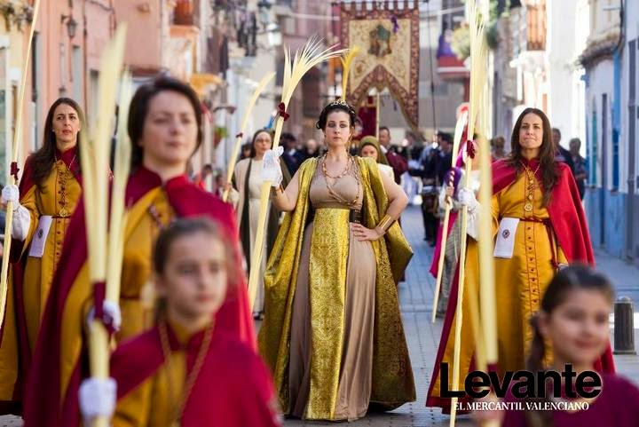 Acto colorista, único en el mundo, la alegría de la Resurrección se expresa en un paso multicolor en el que es una gozada contemplar el paso de las hermandades.Está documentado desde 1928. Además se producen encuentros de imágenes desde primeras horas de la mañana. Un cortejo multicolor, sin imágenes, con los Personajes Bíblicos de blanco, y con los nazarenos con la cara descubierta, las samaritanas y Personajes Bíblicos lanzan flores a su paso, con el paso marcial de granaderos, sayones, pretorianos y longinos… Una verdadera explosión de mediterraneidad, con la alegría propia de la Pascua. La música, con sus alegres notas, acompaña al momento de gloria que se vive.