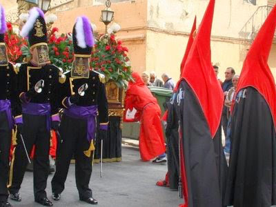 Visita a los monumentos, el Jueves Santo. Se conoce a esta procesión también como la tamborada, por participar sólo tambores en las bandas que acompañan a Hermandades y Cofradías.