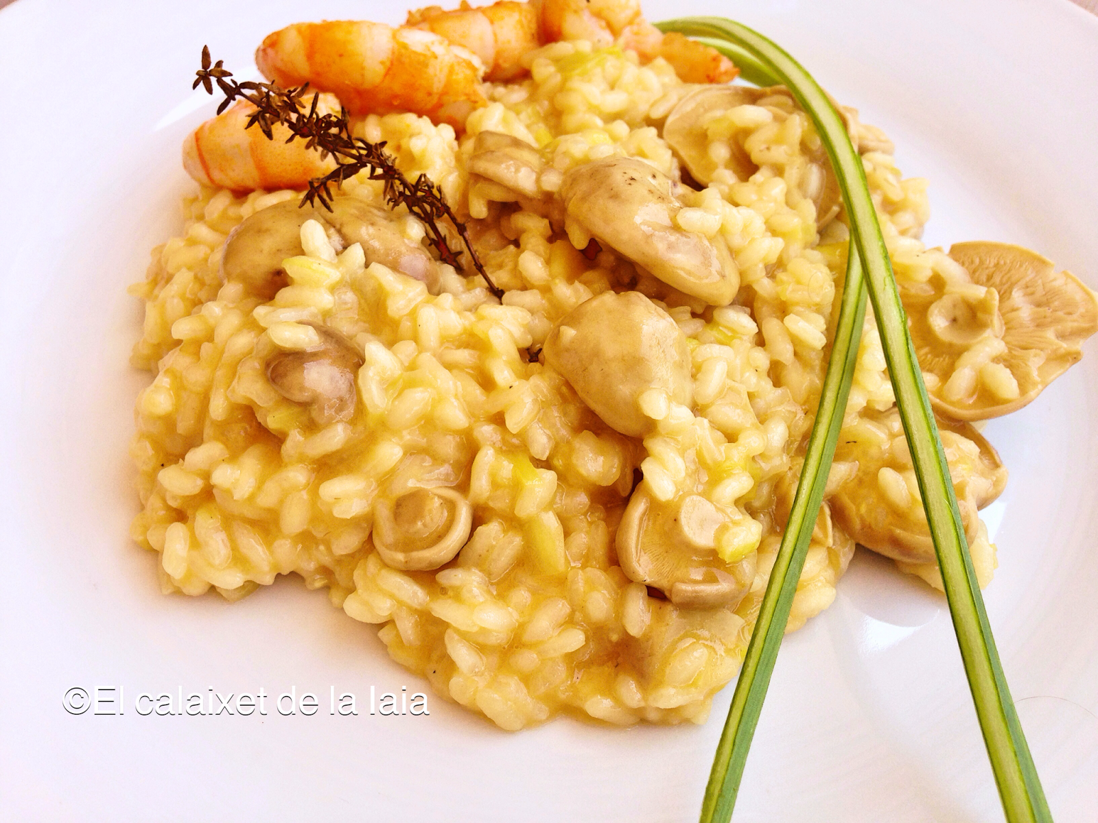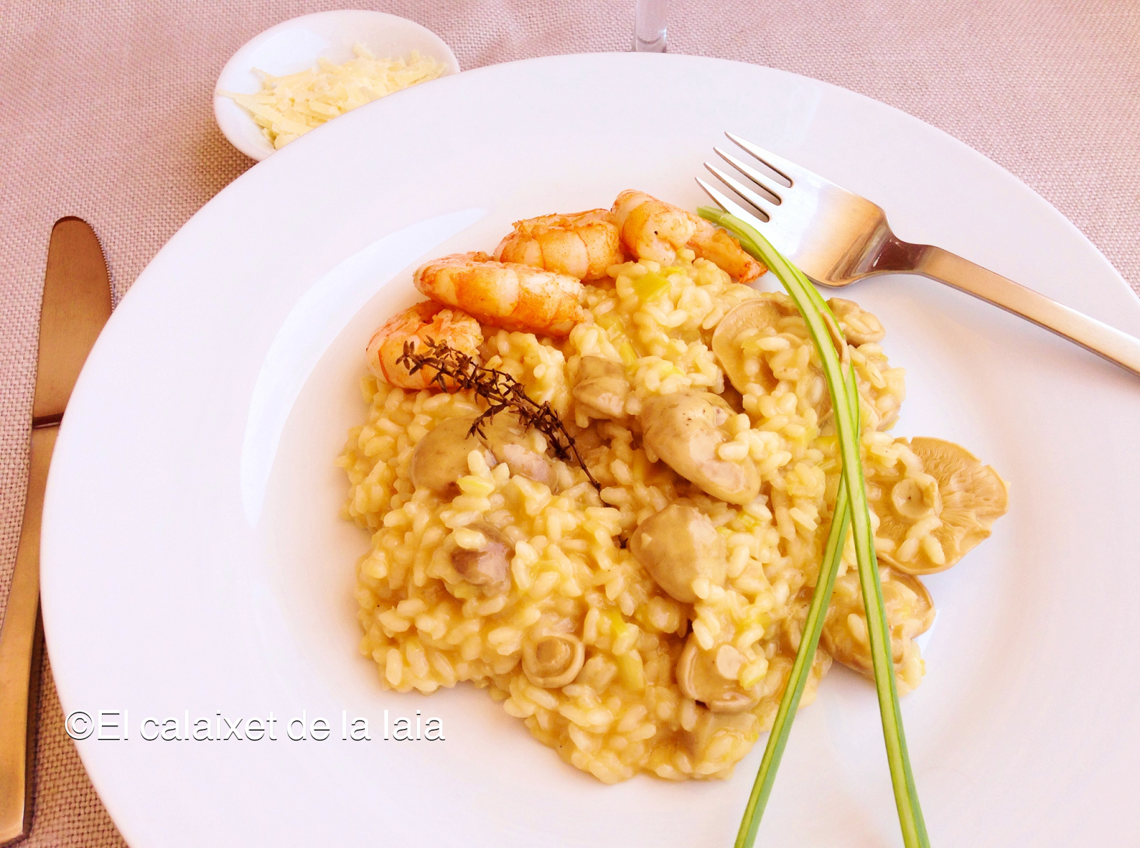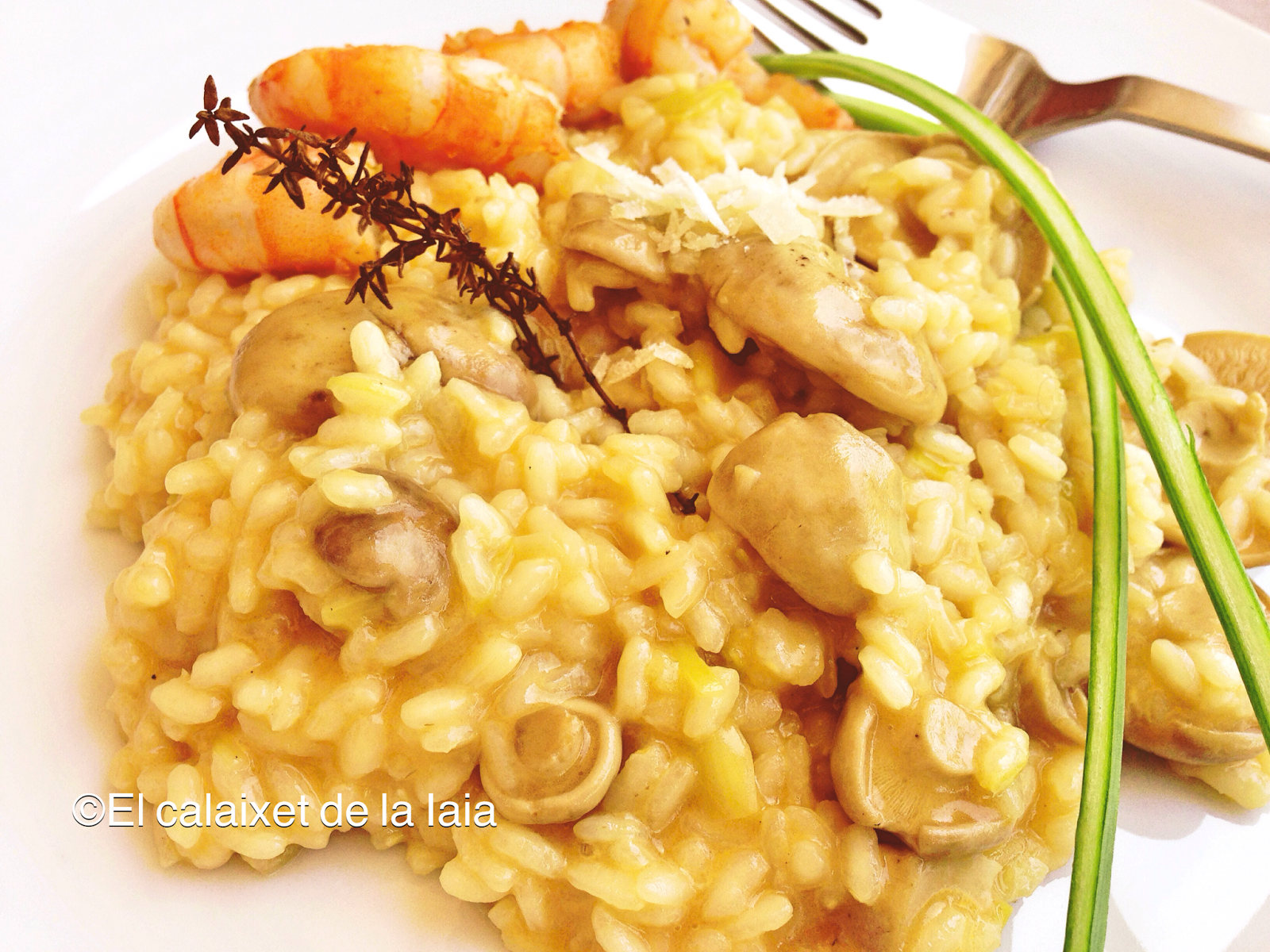 Tenía un buen plato de perrechicos, recién cogidos del bosque (quienes me seguís, ya sabéis que mi maridín es un esperto cazados de setas ;)) y he querido hacer éste risotto, con el que nos hemos chupado los dedos.