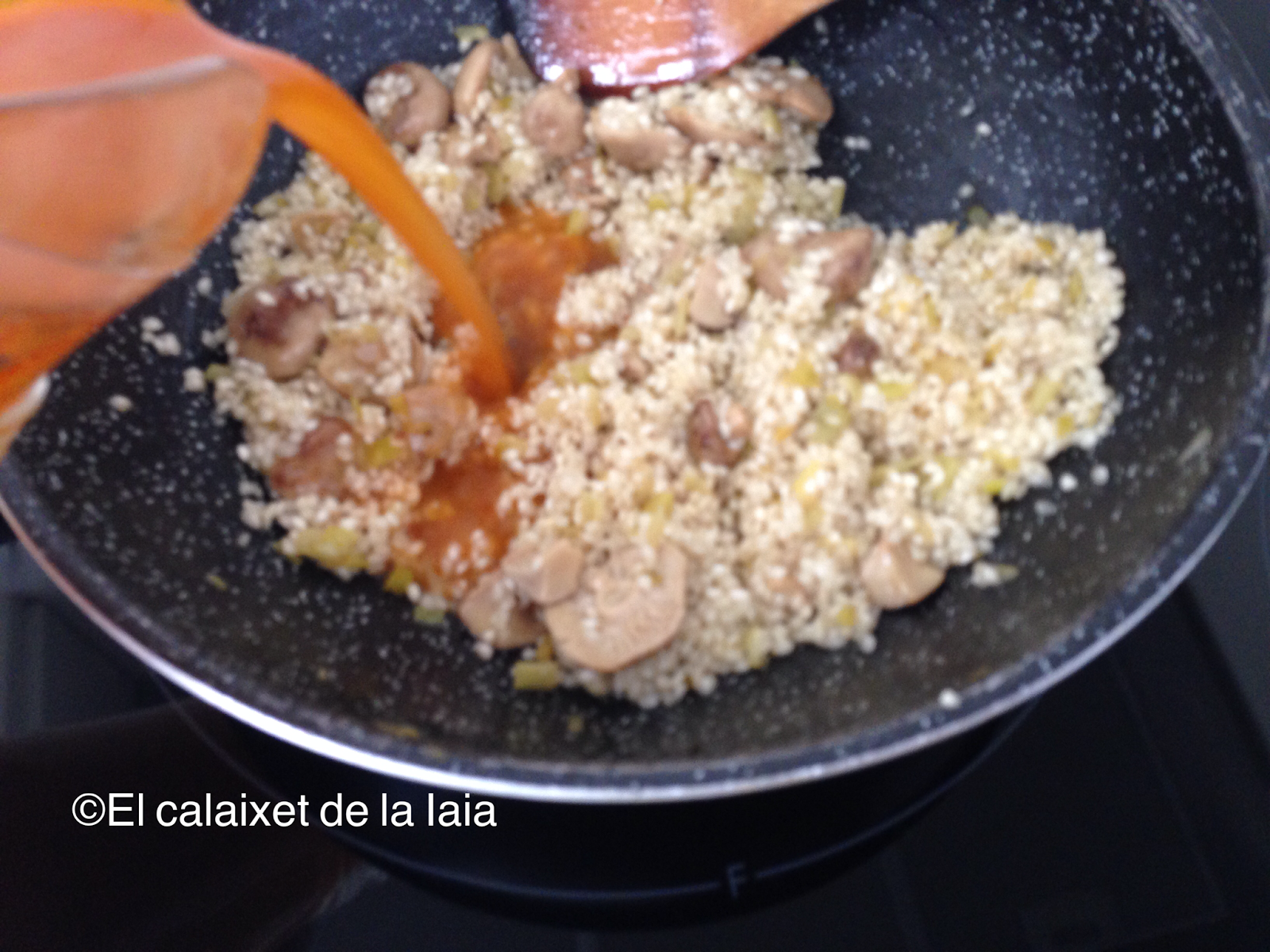 Añadiremos poco a poco el fumet e iremos removiendo,