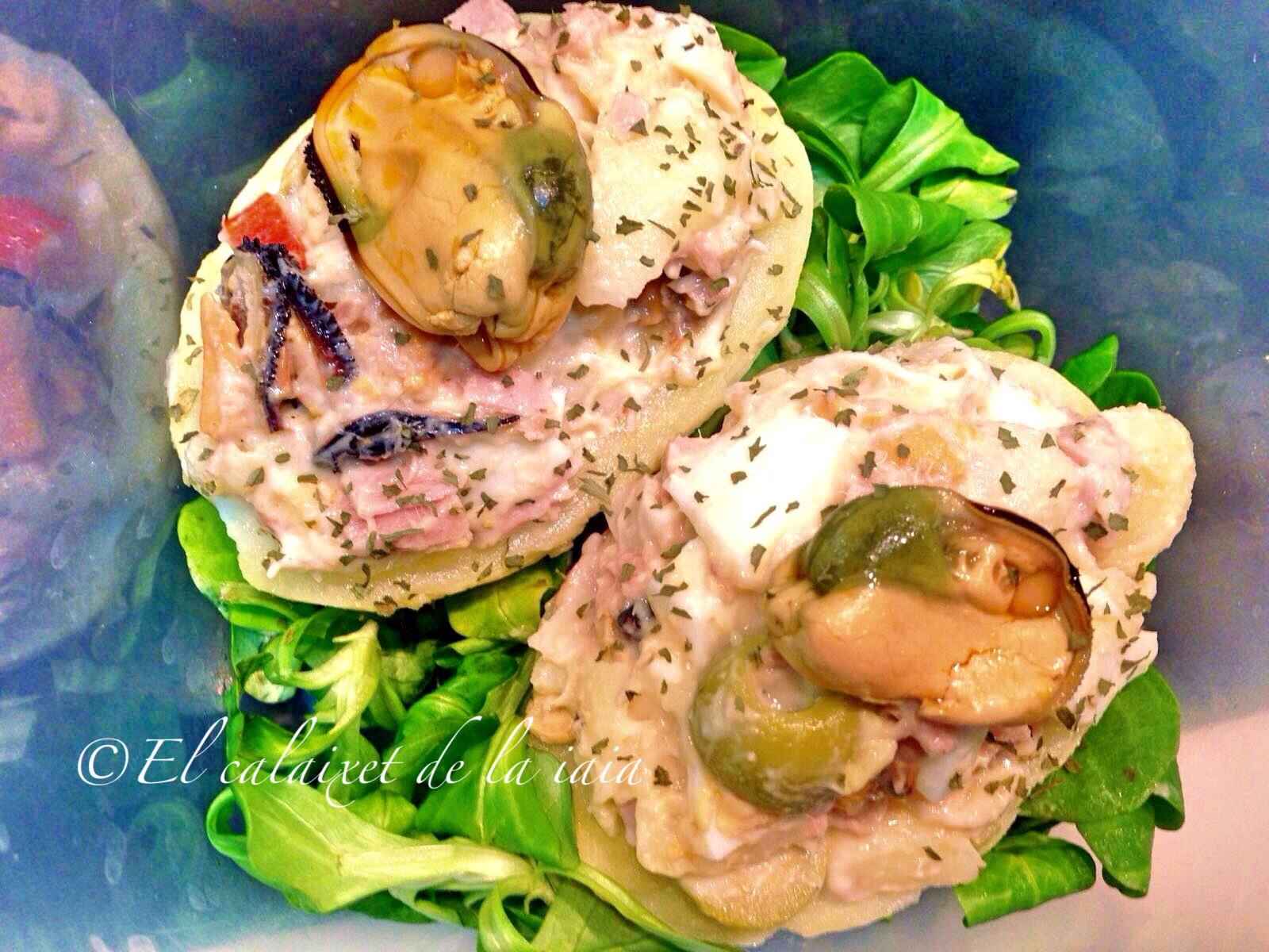 Como tenía unos mejillones escabechados caseros, los utilicé para «bandera» jejeje, pero podéis poner una anchoa, o lo que os apetezca.