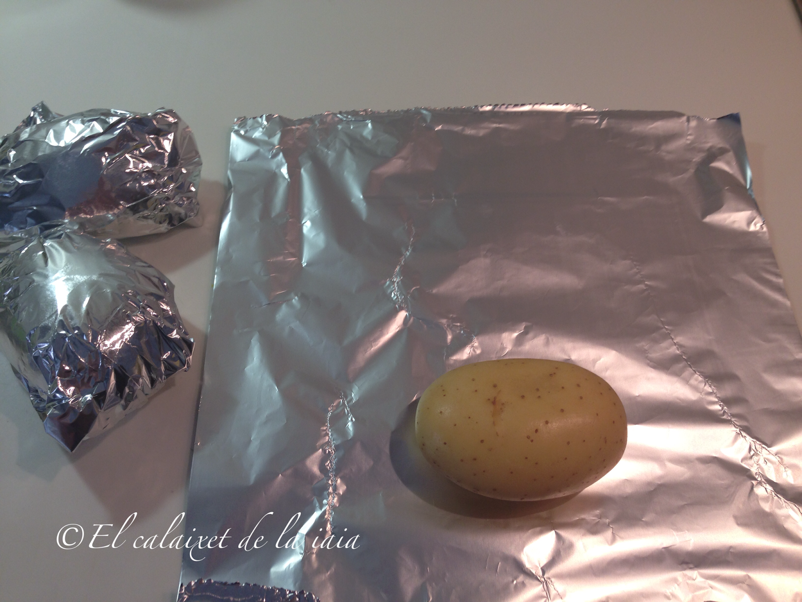Lavamos la cantidad de patatas que vayamos a preparar y las envolvemos en papel de plata, haciendo paquetitos