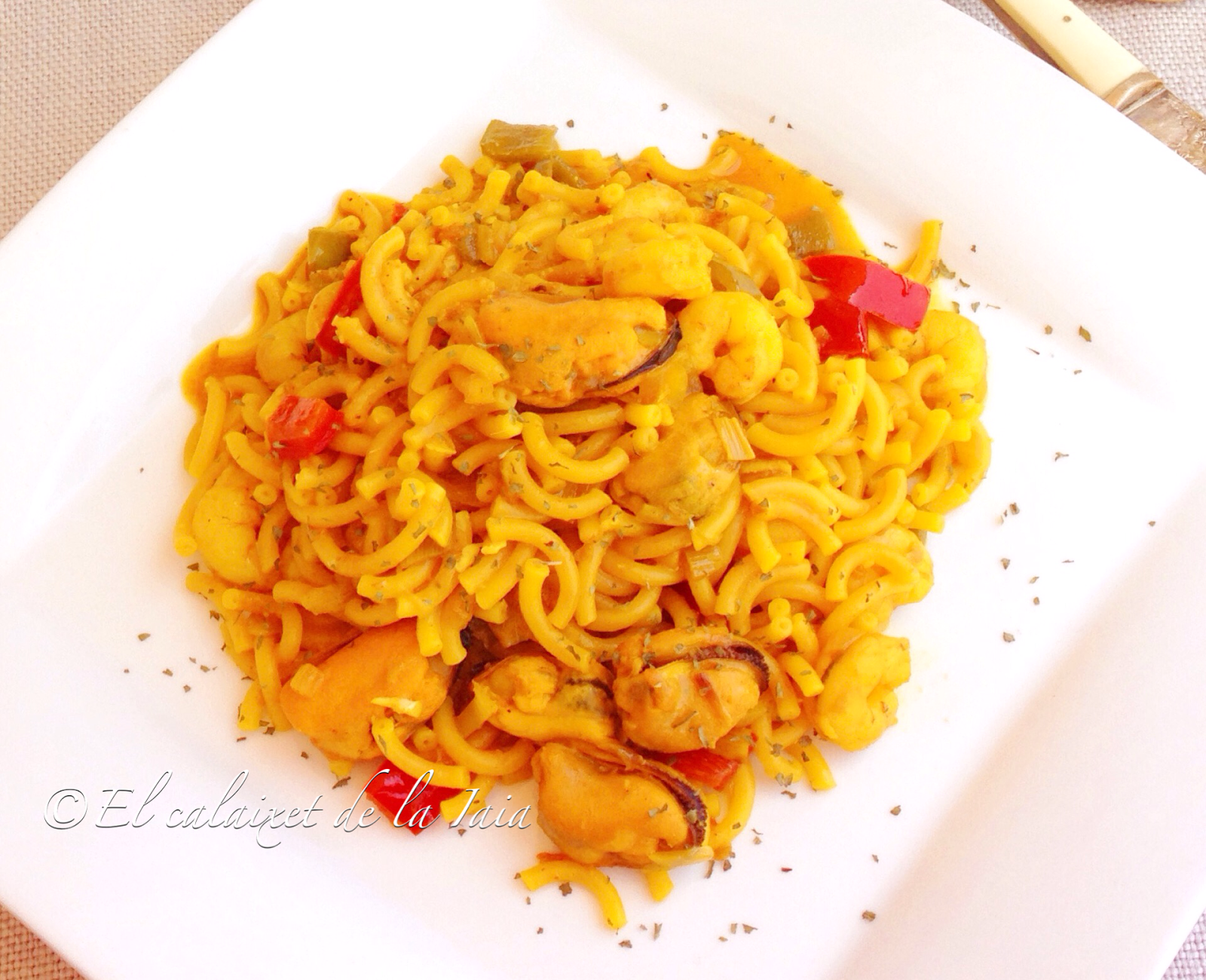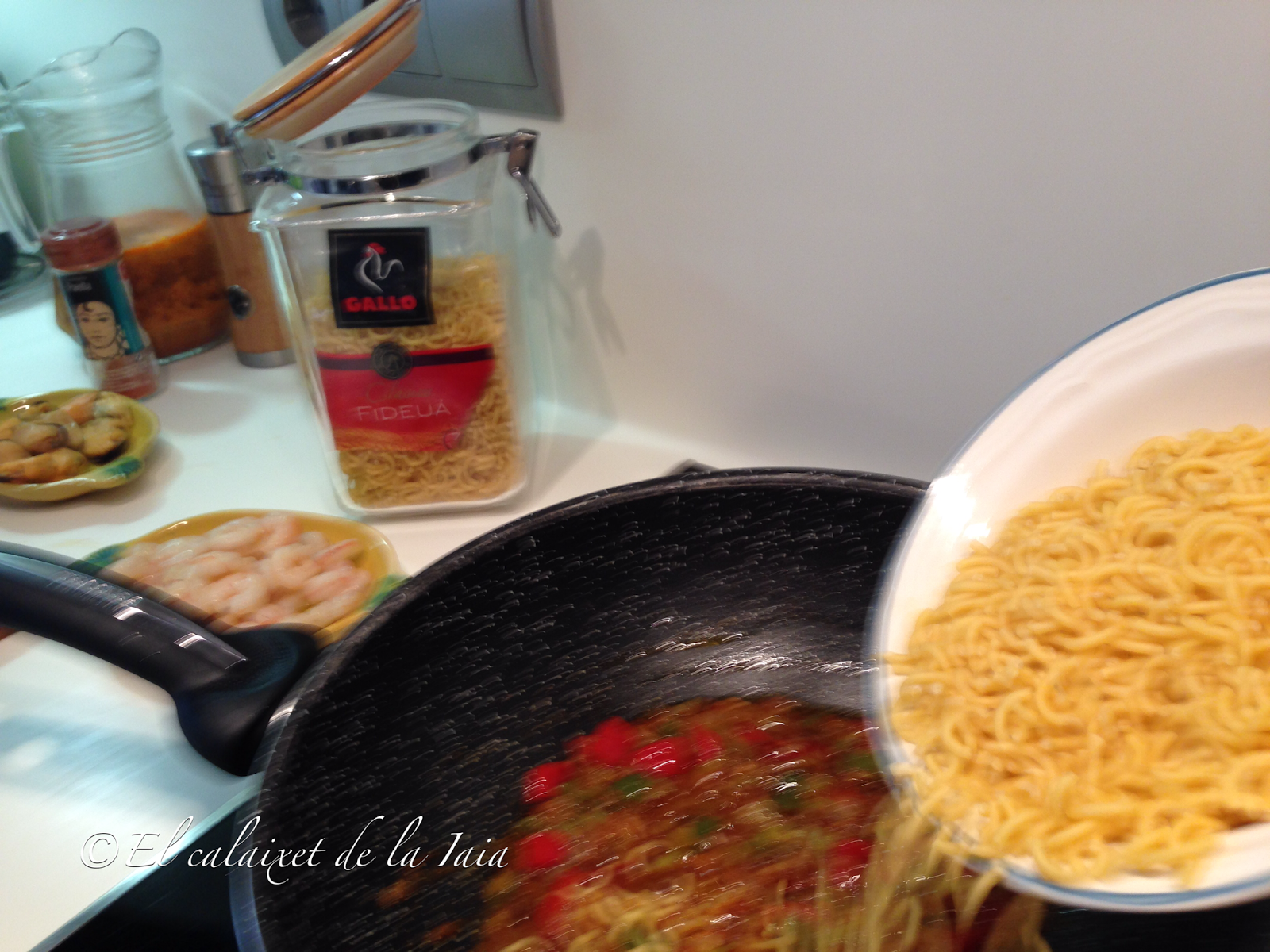 Antes de continuar, quiero aclararos que ésto NO es una Fideuá, para nada, es un plato inventado, con lo que tenía en casa, que nos encantó y comparto con vosotros.