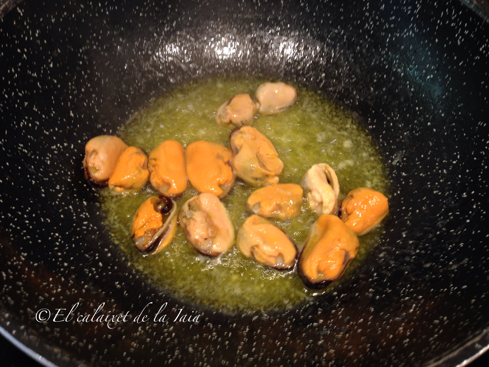 Comenzaremos preparando los mejillones o clóchinas al vapor como aquí; https://elcalaixetdelaiaia.es/?p=968