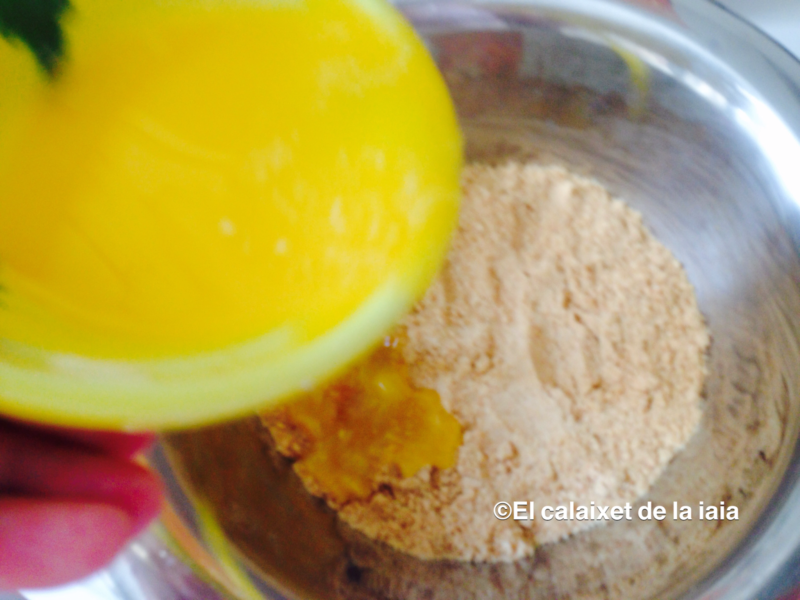 mezclaremos la mantequilla y la galleta picada hasta que tenga aspecto de arena mojada