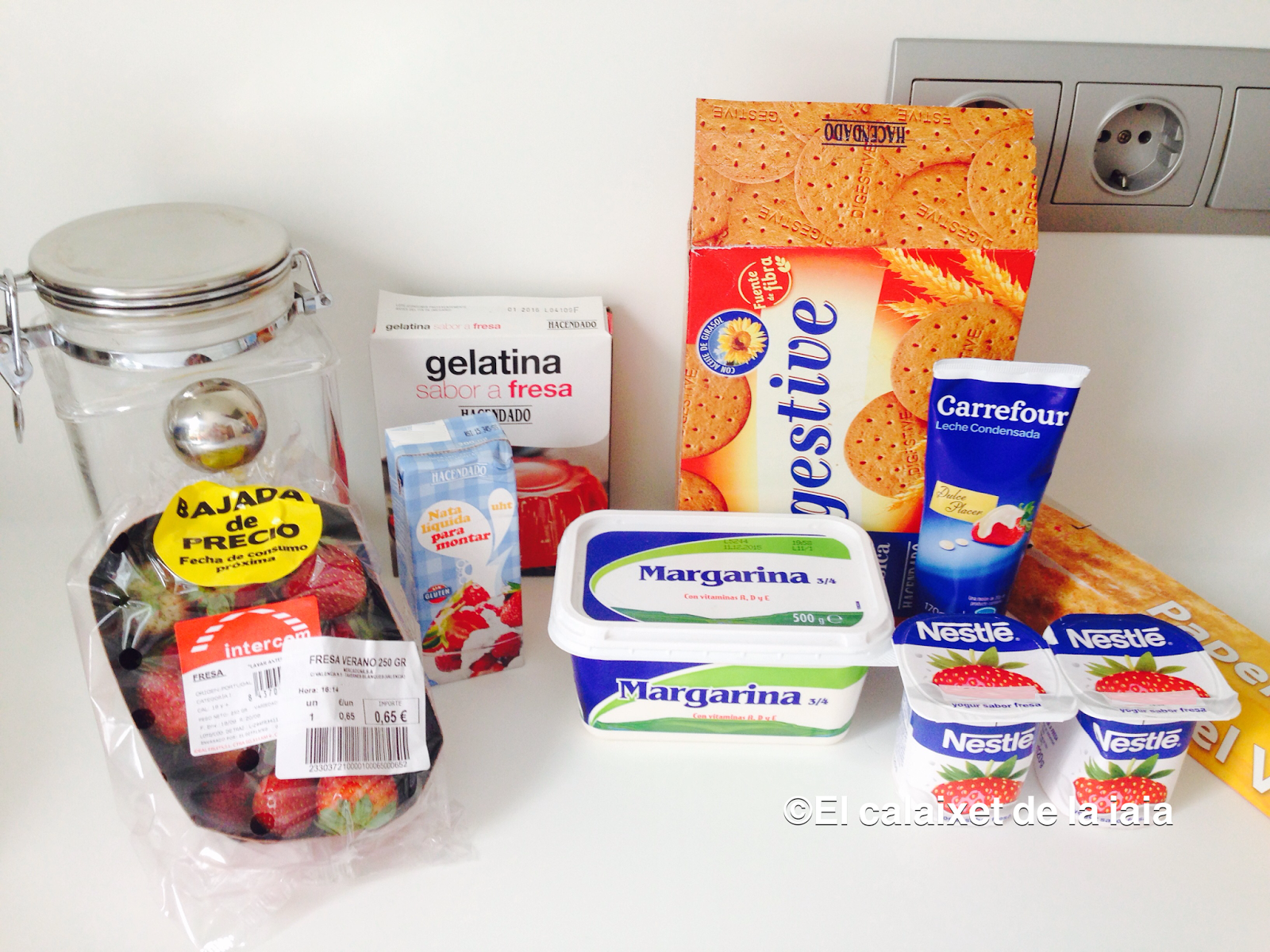 - Un sobre de gelatina, (unos 40g) de sabor fresa