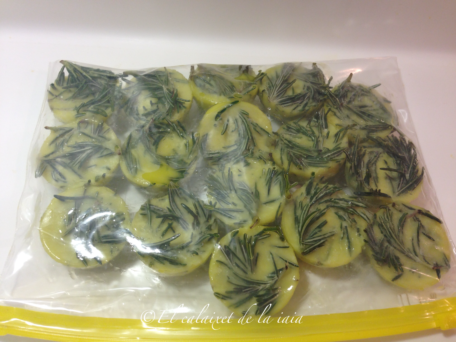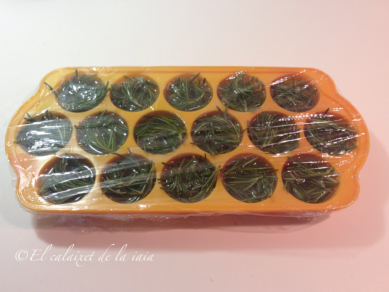Soy muy fanática del romero y el tomillo en la cocina y me encanta tener macetas con plantas aromáticas frescas pero en el pueblo es tarea imposible, pues la bajas temperaturas hacen se se hielen irremediablemente, por lo que he de acabar usando plantas secas…y no me gusta, es por éso que he dado mil vueltas buscando soluciones para poder disponer siempre de hierbas frescas, ya que sobretodo para la paella, el romero me resulta imprescindible así que tras mucho buscar, he dado con la solución perfecta y es congelarlas.