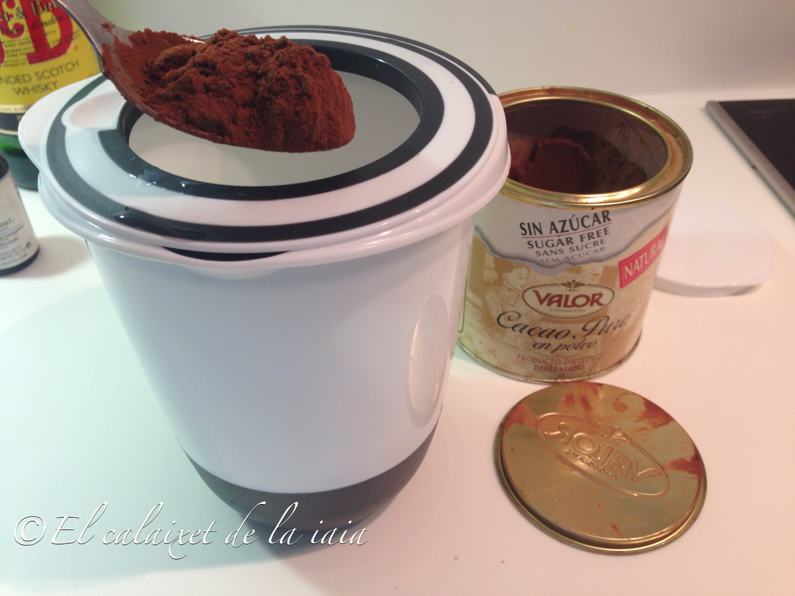 - Una cucharada sopera bien colmada, de cacao puro sin azúcar valor