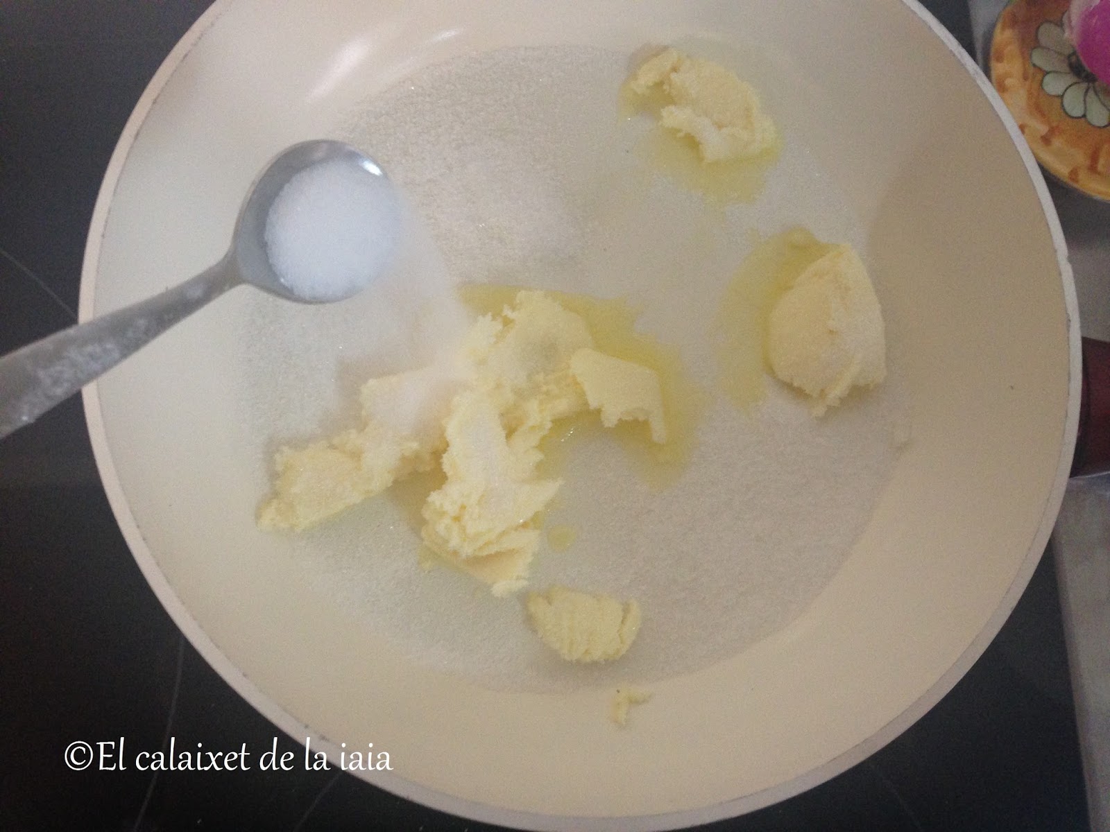 Con una cucharada de mantequilla y un poco de harina, encamisamos el molde para que no se nos pegue la masa y facilitar el desmoldado