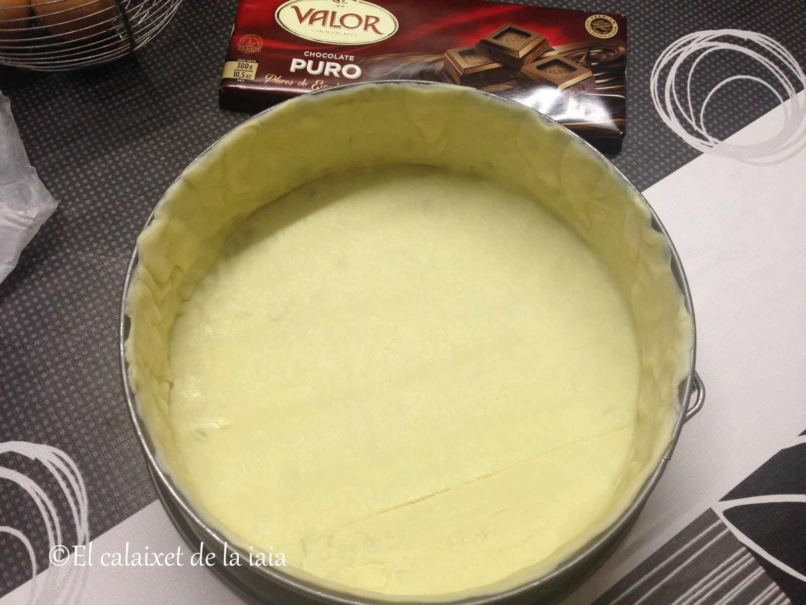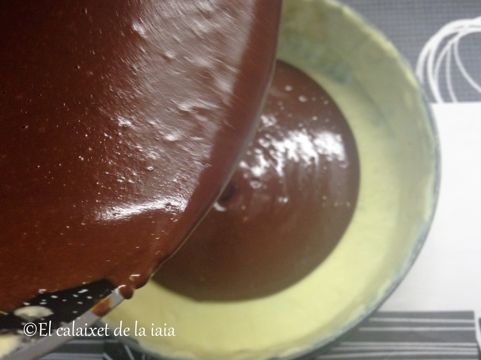 volcaremos la crema de chocolate sobre el molde con la base de masa quebrada