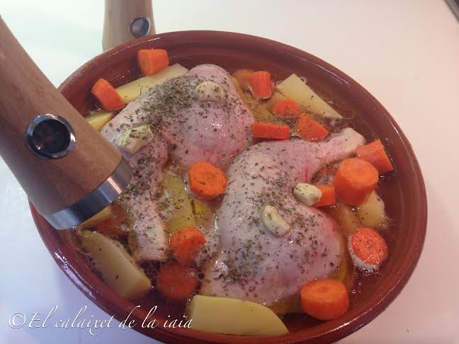 Unas gotitas de aceite de oliva (poco porque recordar que el pollo ya suelta grasita)