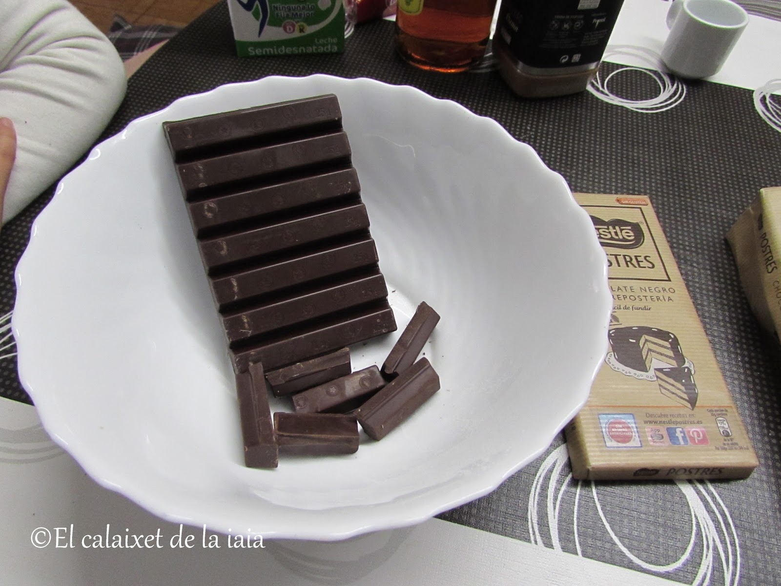 En un bol, trocearemos la tableta de chocolate fondant de Nestlé postres