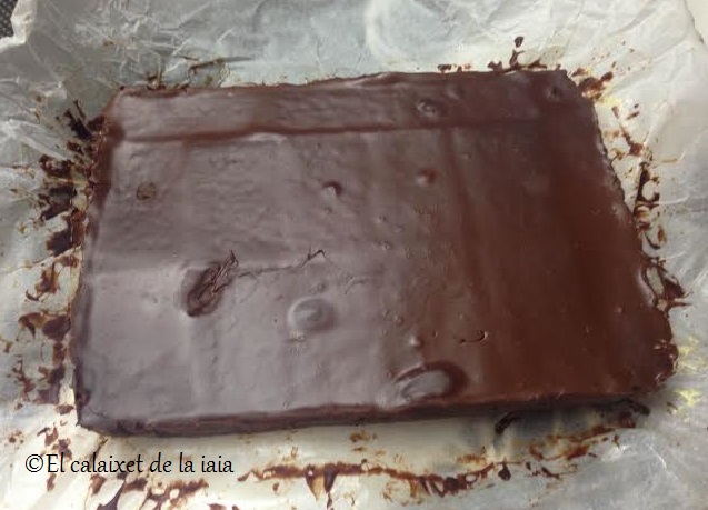 Terminaremos con una capa de ganaché de chocolate y llevaremos al frigo durante unas cuatro horas para que se solidifique el chocolate lo justo.