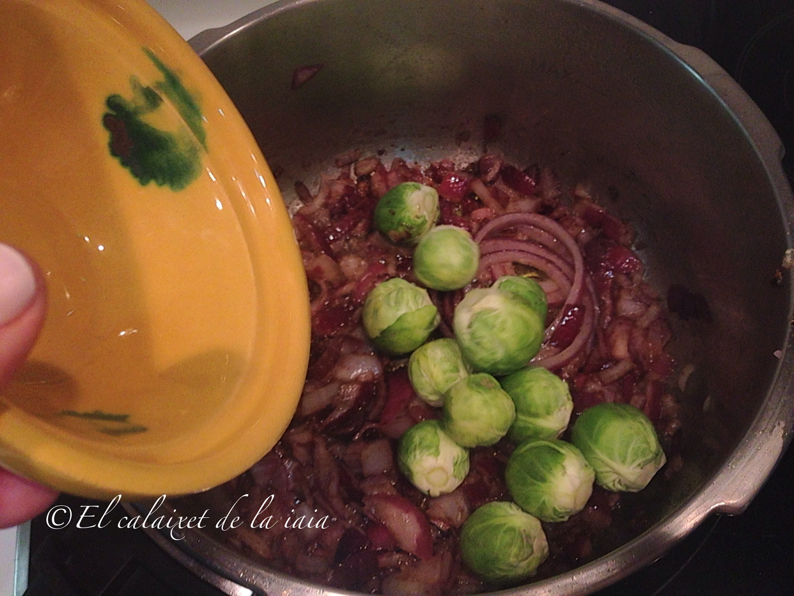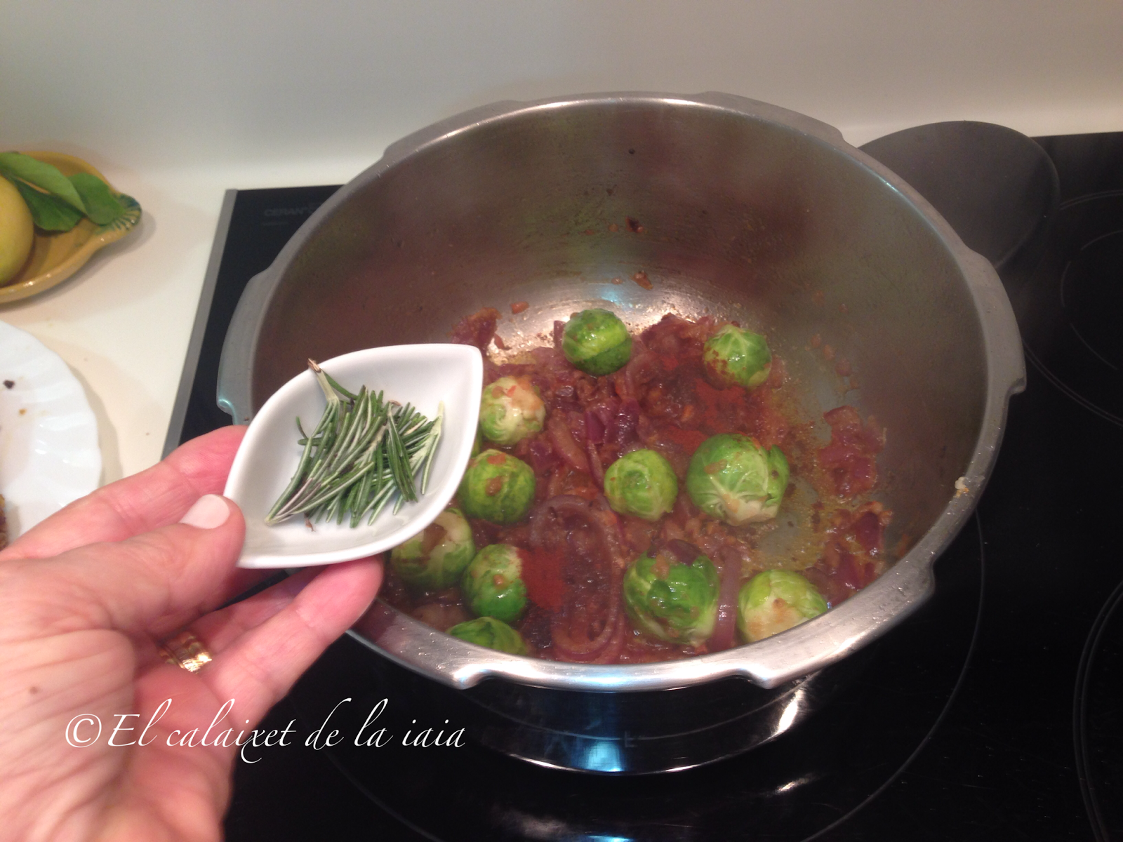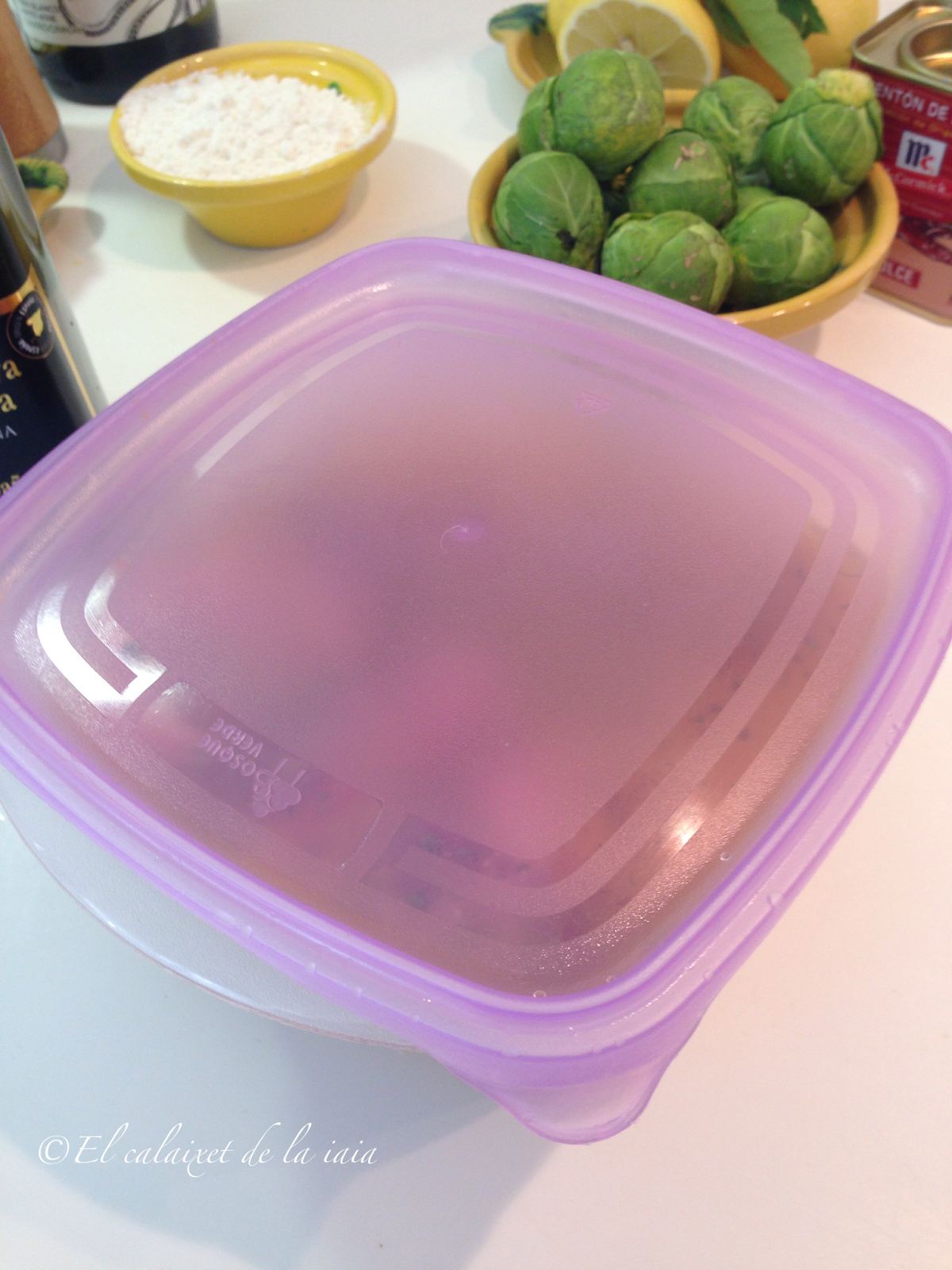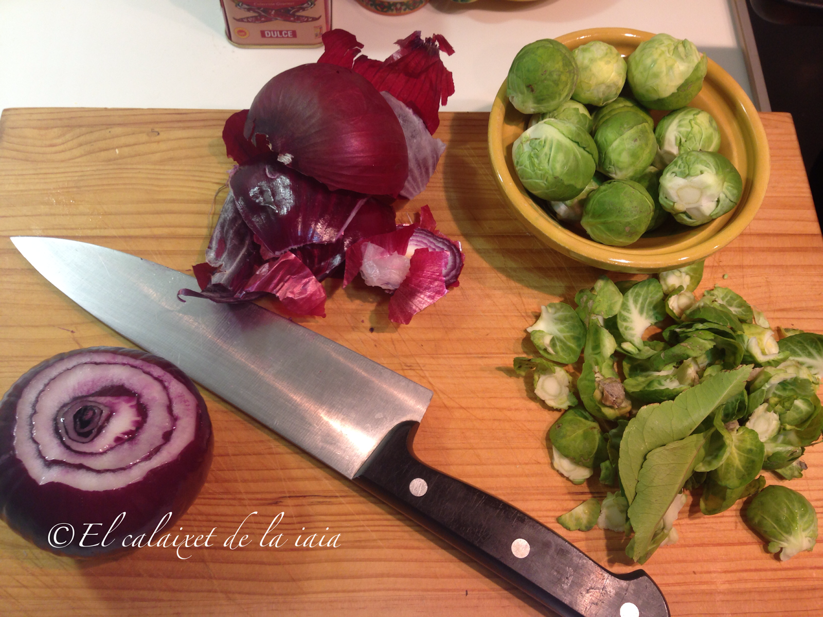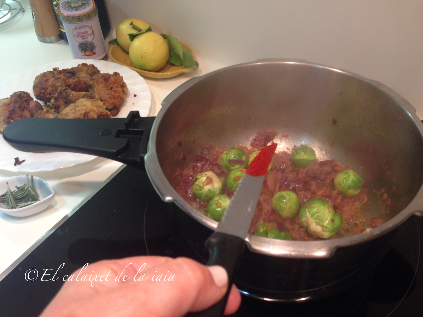 Tuvimos que bajarnos del pueblo a toda prisa por un problema de salud, el mismo día que recibí ésta preciosidad de cesta de naranjas, y ya había sacado del arcón congelador (en el pueblo no hay comercio alguno donde comprar NADA) unas garretas de cordero. Hemos llegado del hospital, y como estamos los dos solos para dos tengo bastante, unas coles de bruselas y alguna otra verdura que hay en el frigo… voy a preparar para comer mañana, un plato especial para celebrar que hemos superado otros dos sustos más, y en honor de naranjas LU.