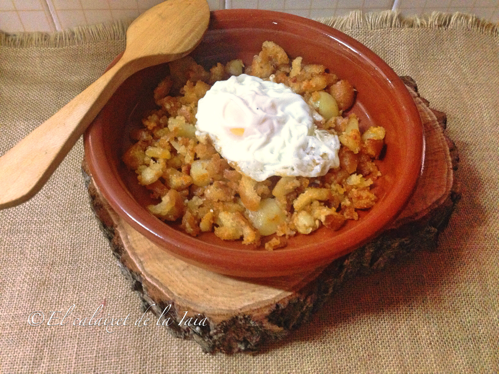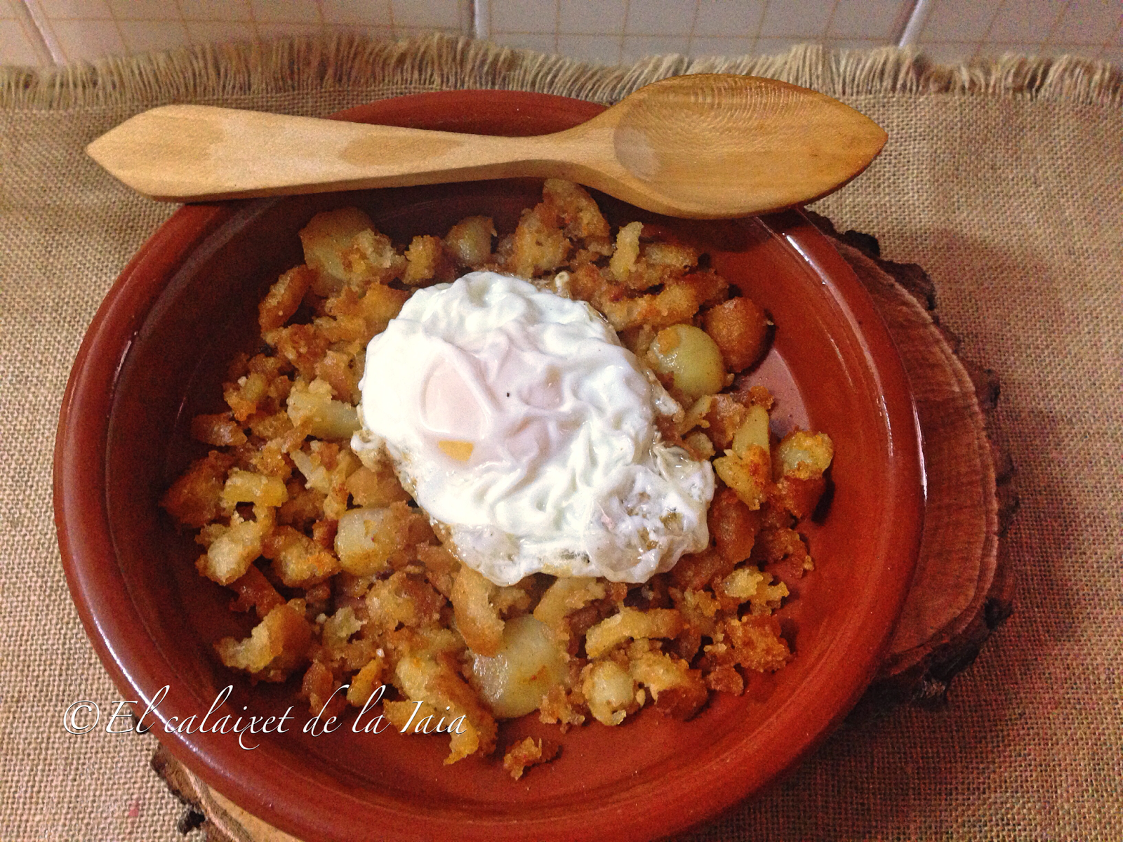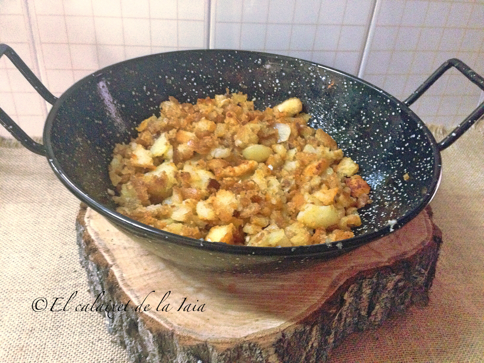 Hoy traigo mi receta de las migas con patatas. Un plato muy tradicional y barato. Antiguamente del pan, no se desperdiciaba «ni miguita» y éste era un plato muy habitual en la cocina de aprovechamiento en cualquier hogar, aunque no en todos, podían coronarlo con un huevo frito…