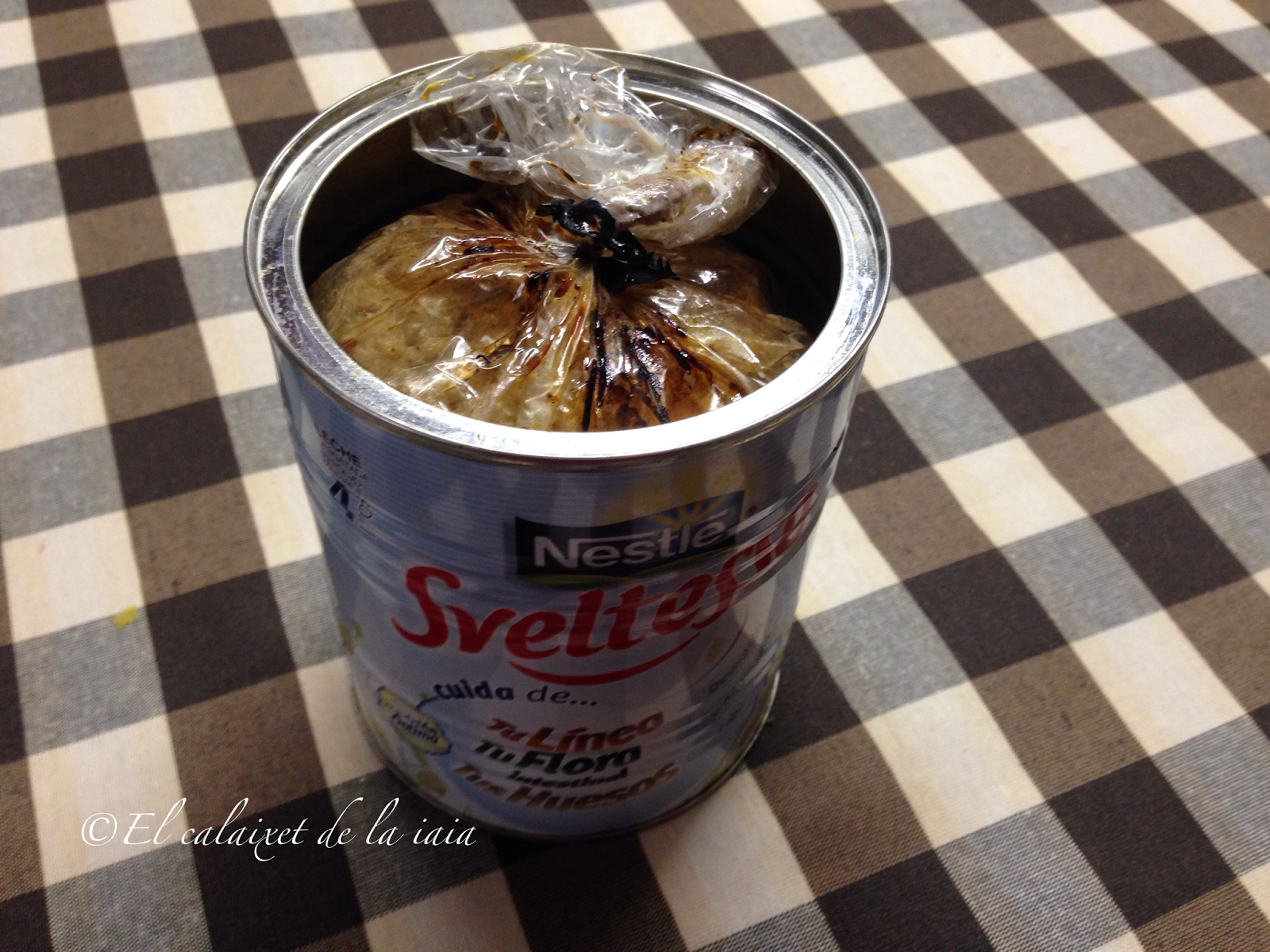 colocamos una bolsa de asar dentro de una lata vacía