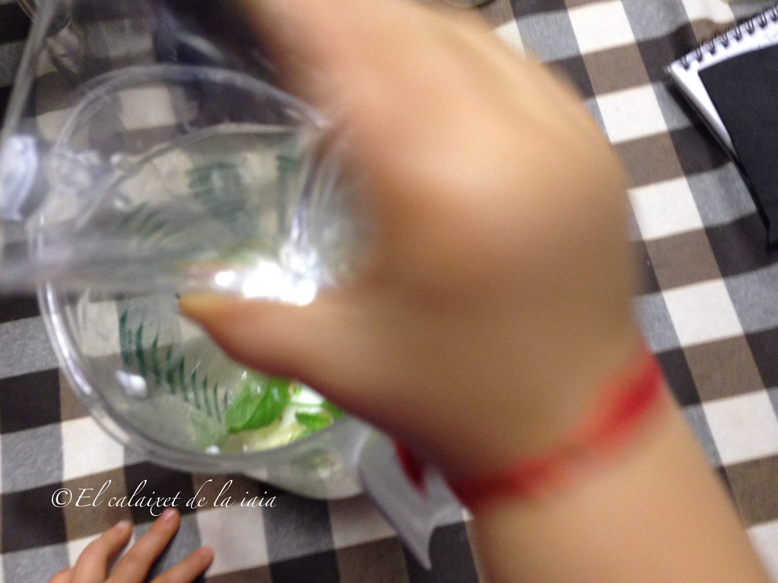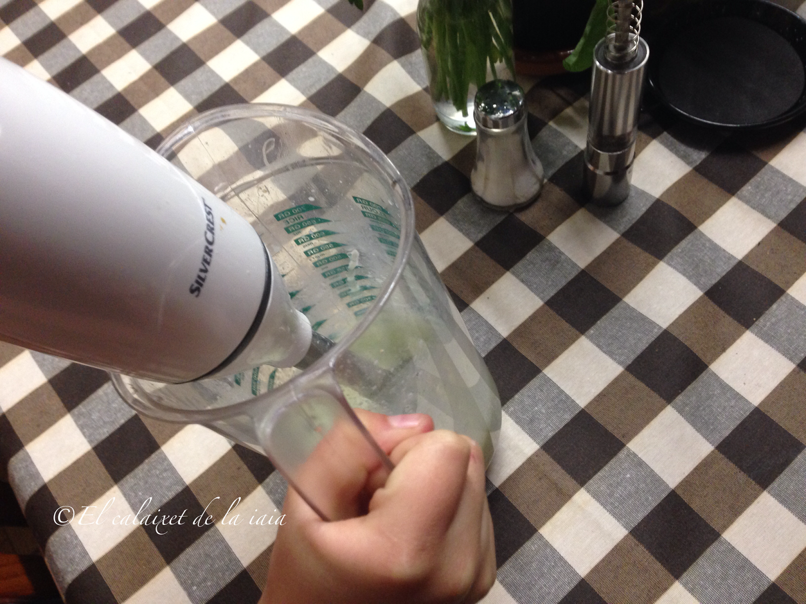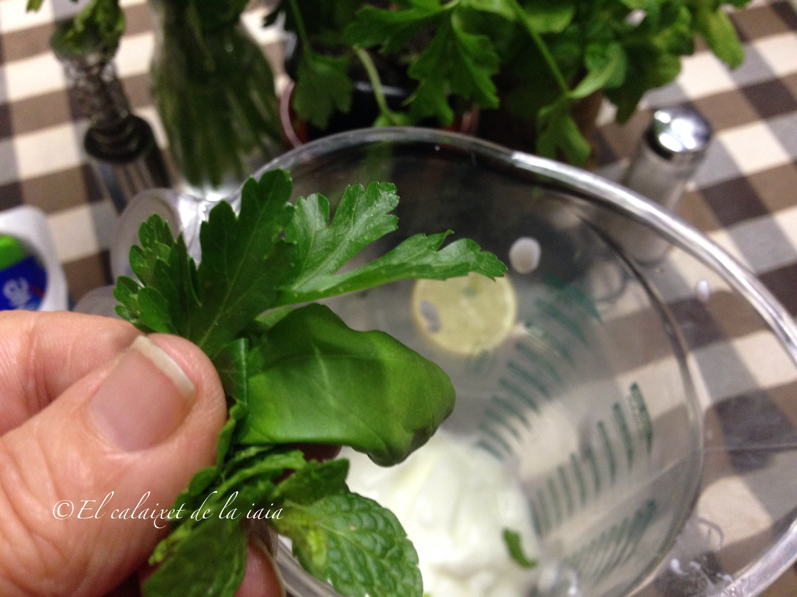 Cortamos unas ramitas de perejil, albahaca y hierbabuena y las ponemos bien enjuagadas en el vaso de la batidora
