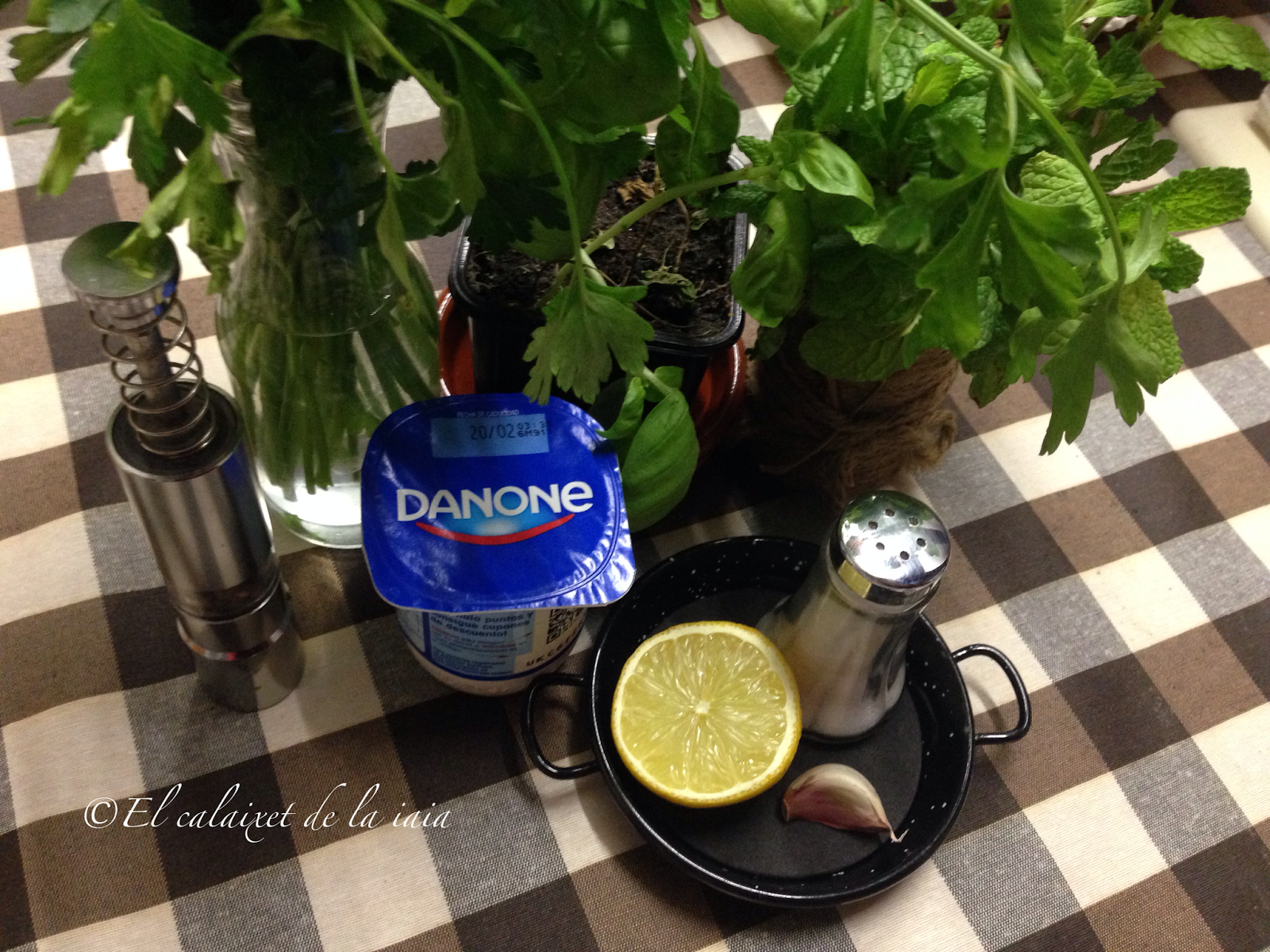 Un salsa de yogur muy sencilla y rápida, para acompañar cualquier carne y en éste caso un kebab casero.