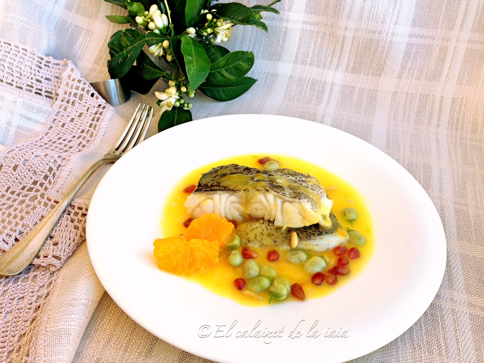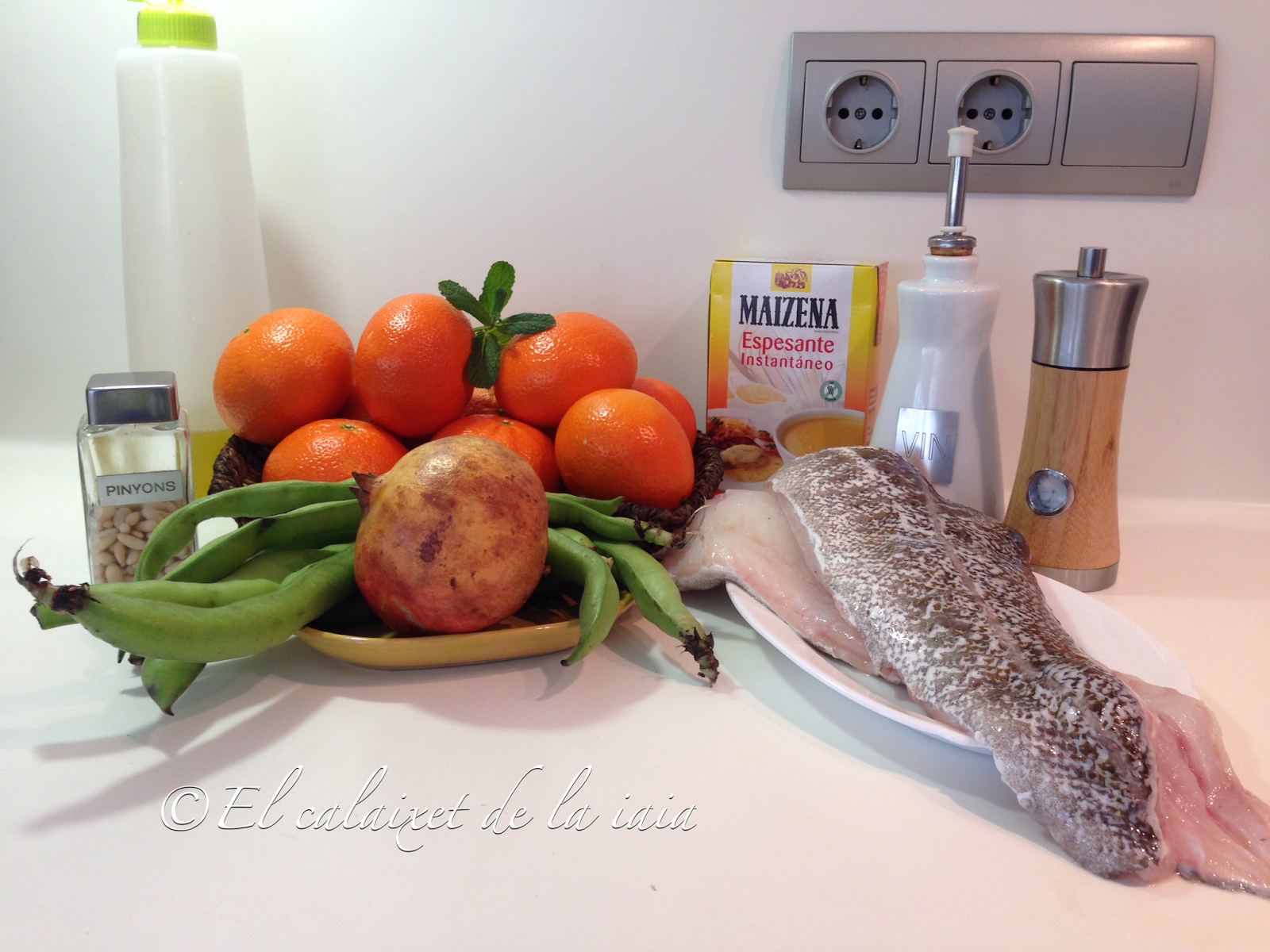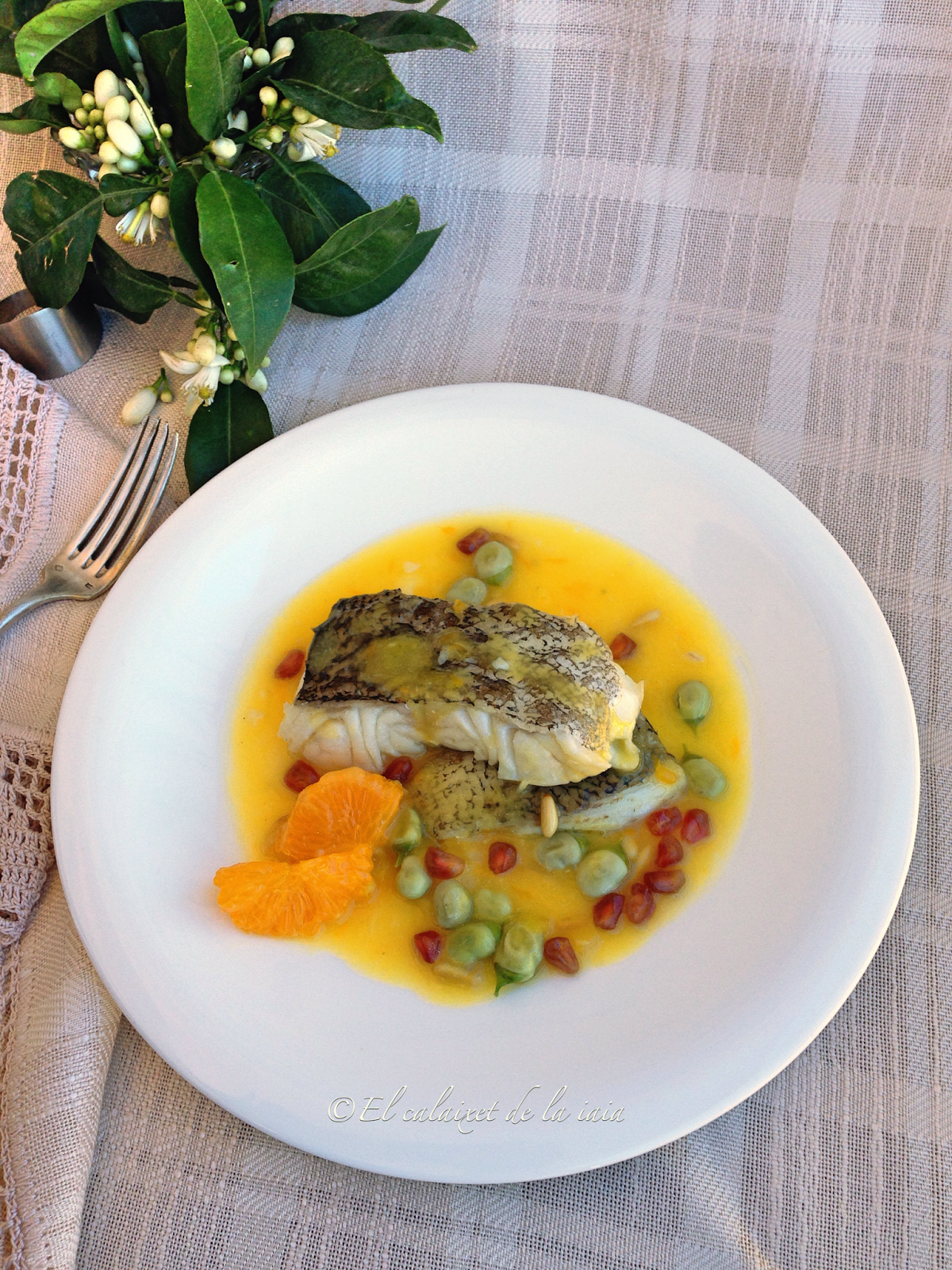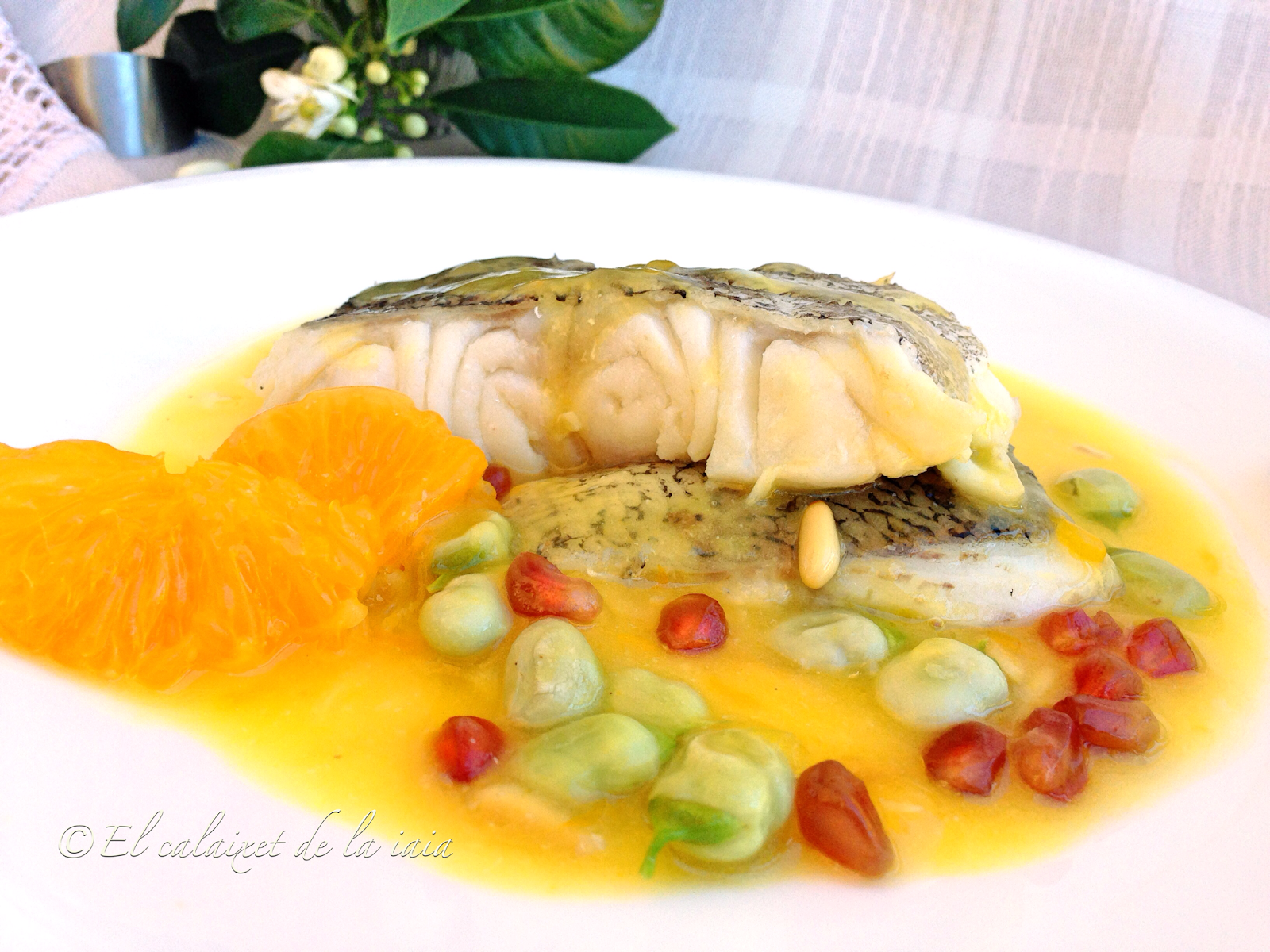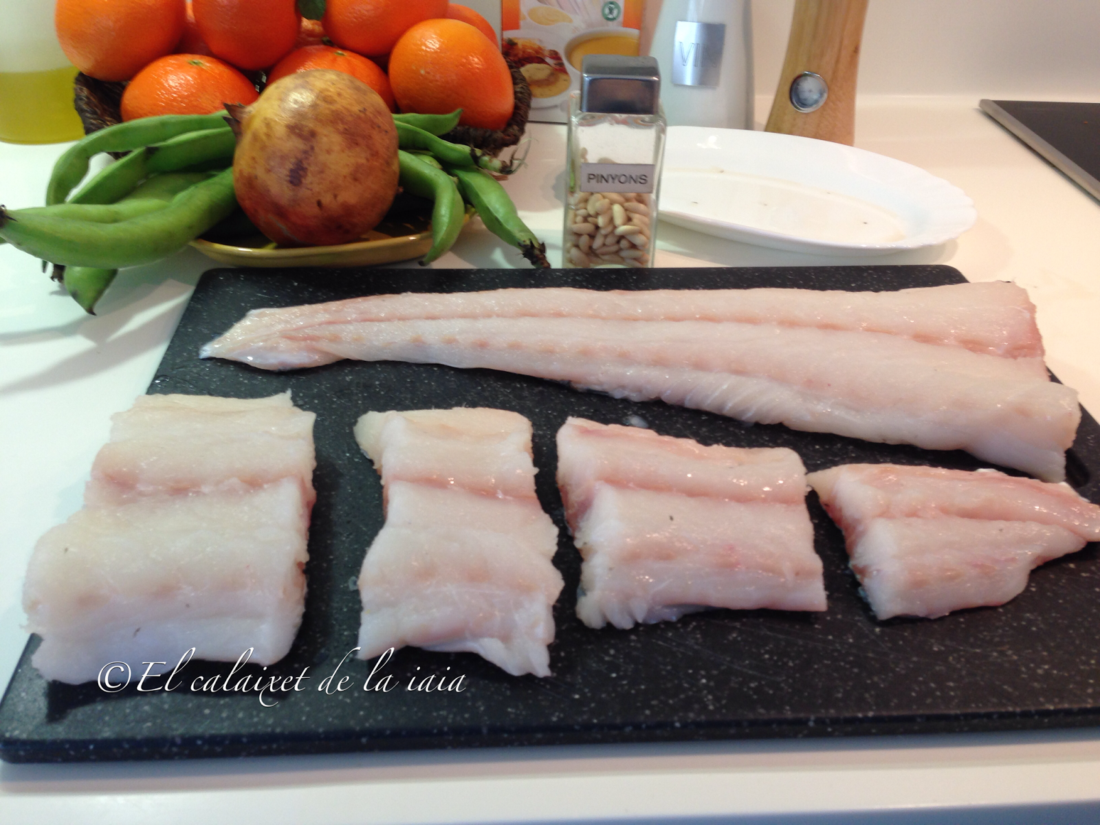 hoy he preparado un bacalao natural que encima estaba de oferta, con unas habitas frescas y un escabeche de mandarina que quita el hipo y si no….a ver que os parece.