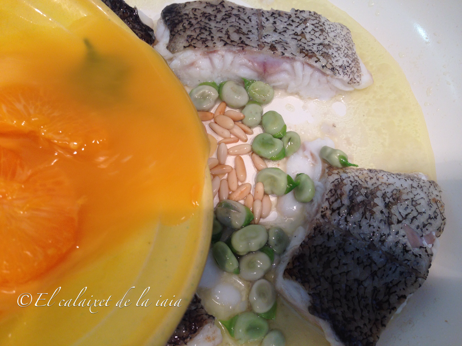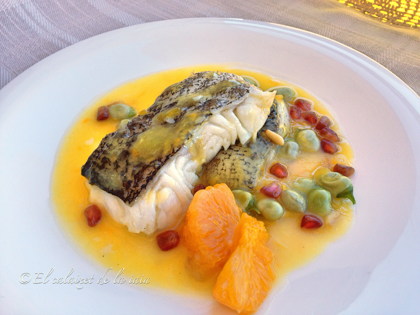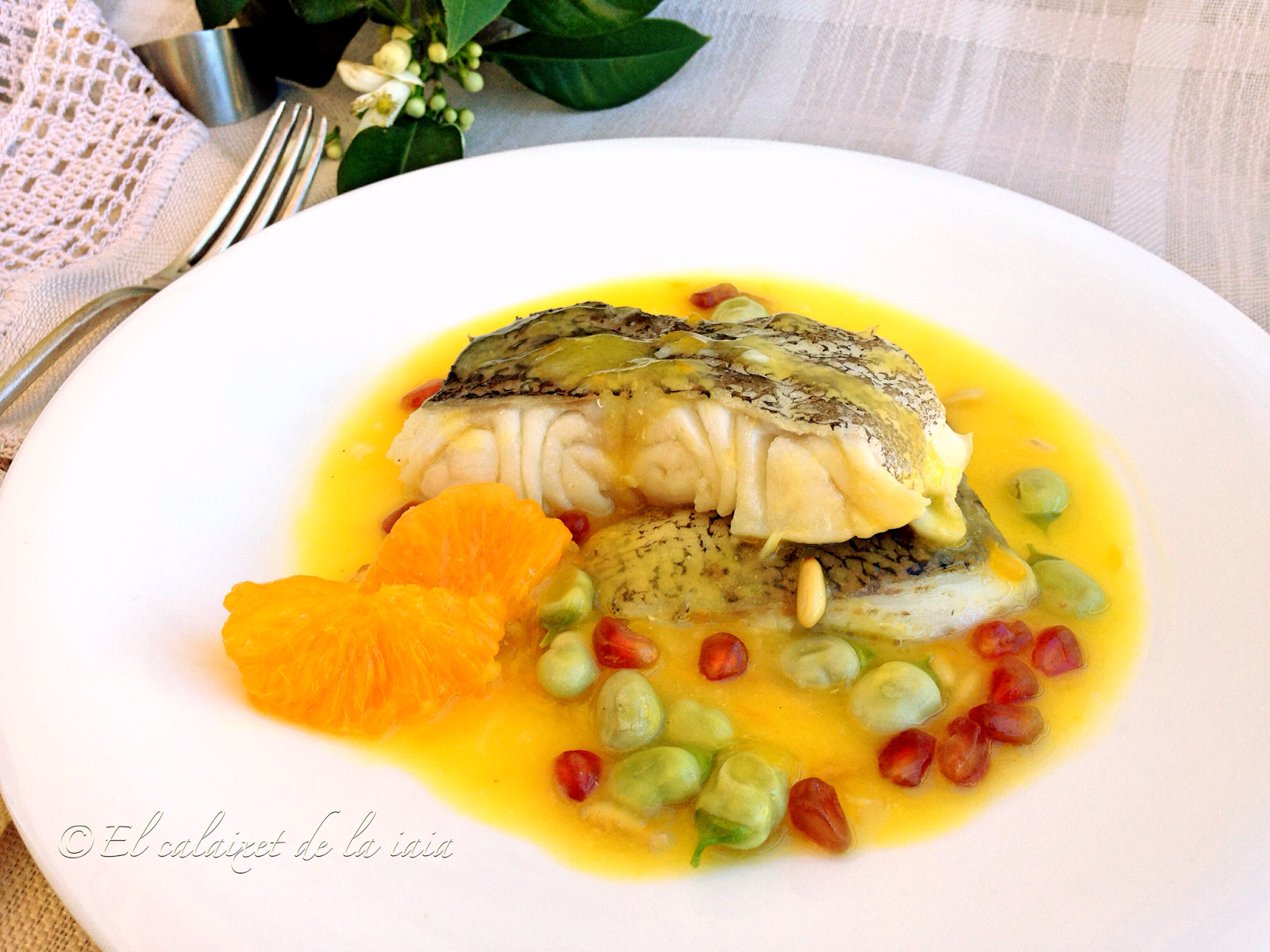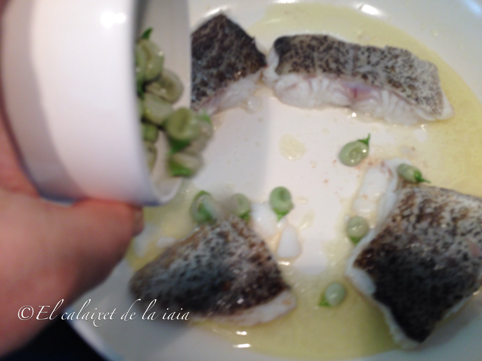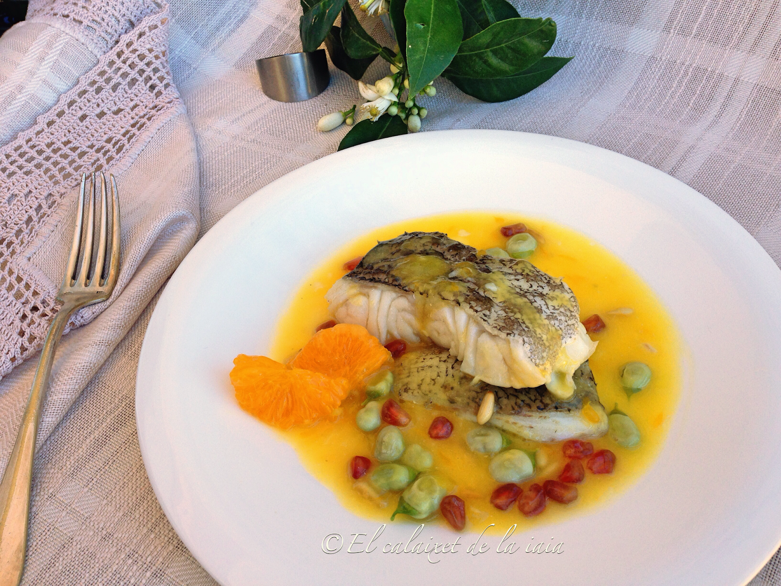 hoy he preparado un bacalao natural que encima estaba de oferta, con unas habitas frescas y un escabeche de mandarina que quita el hipo y si no….a ver que os parece.
