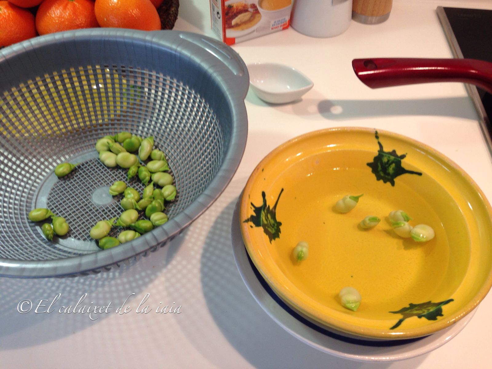 mientras, pelaremos las habas y las escaldaremos en agua hirviendo
