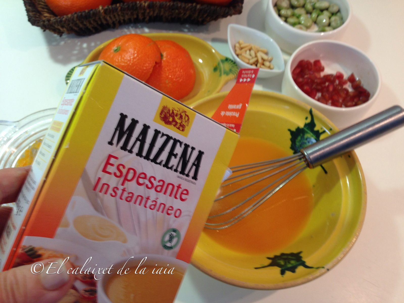 Espesaremos la salsa con dos cucharaditas de Maizena exprés, tener en cuenta que luego al fuego espesará mas