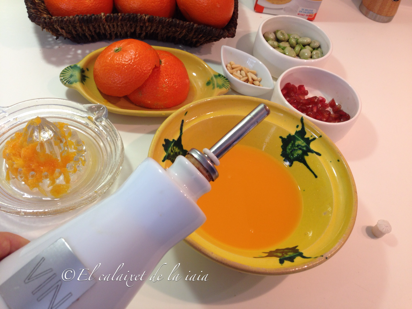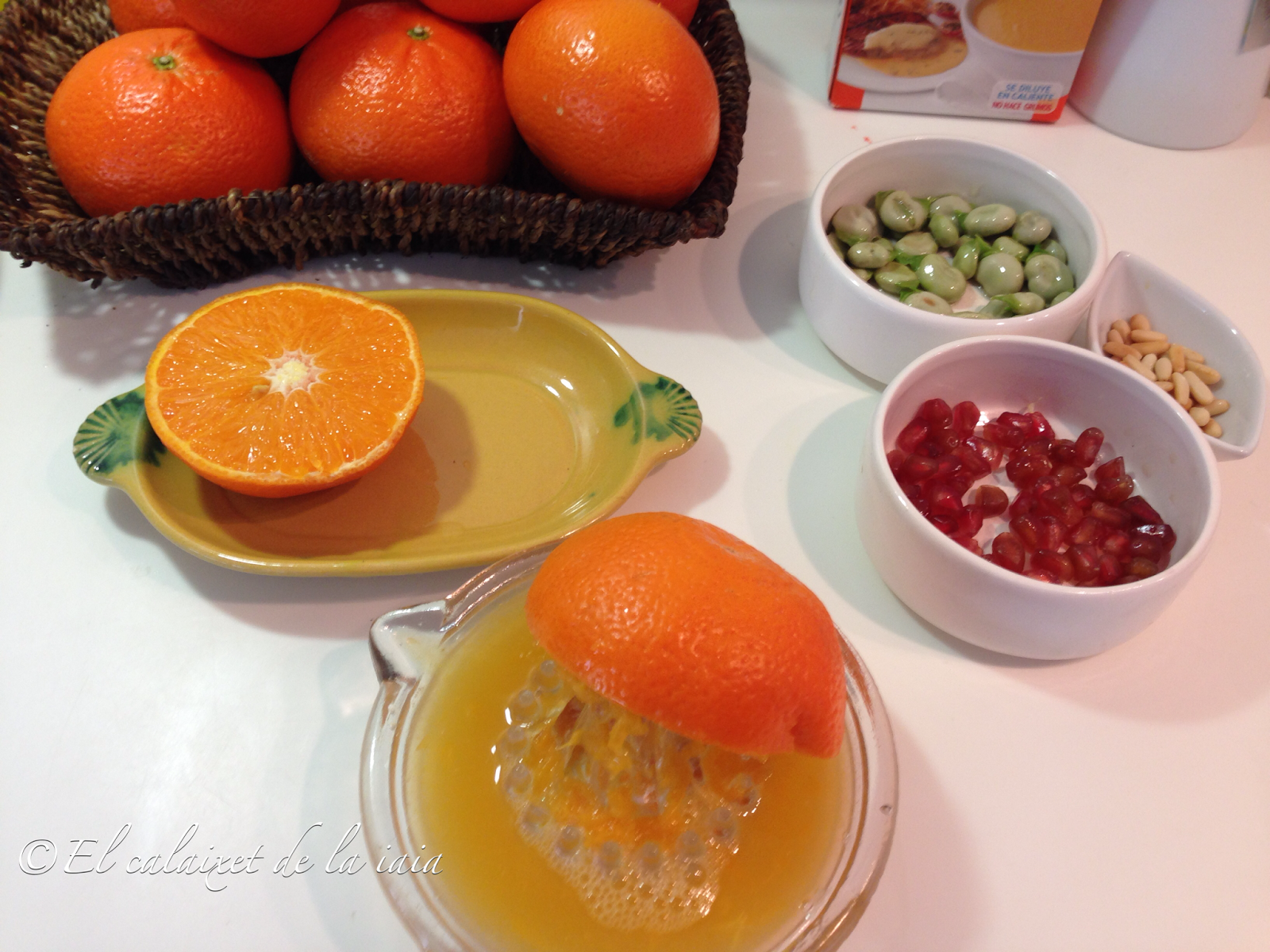 y el escabeche de mandarina al que añadiremos los gajos de una mandarina pelados, dejaremos unos 5 minutos a fuego lento, rectificaremos de sal y añadiremos la granada ¡Y ya estaaa!!!!
