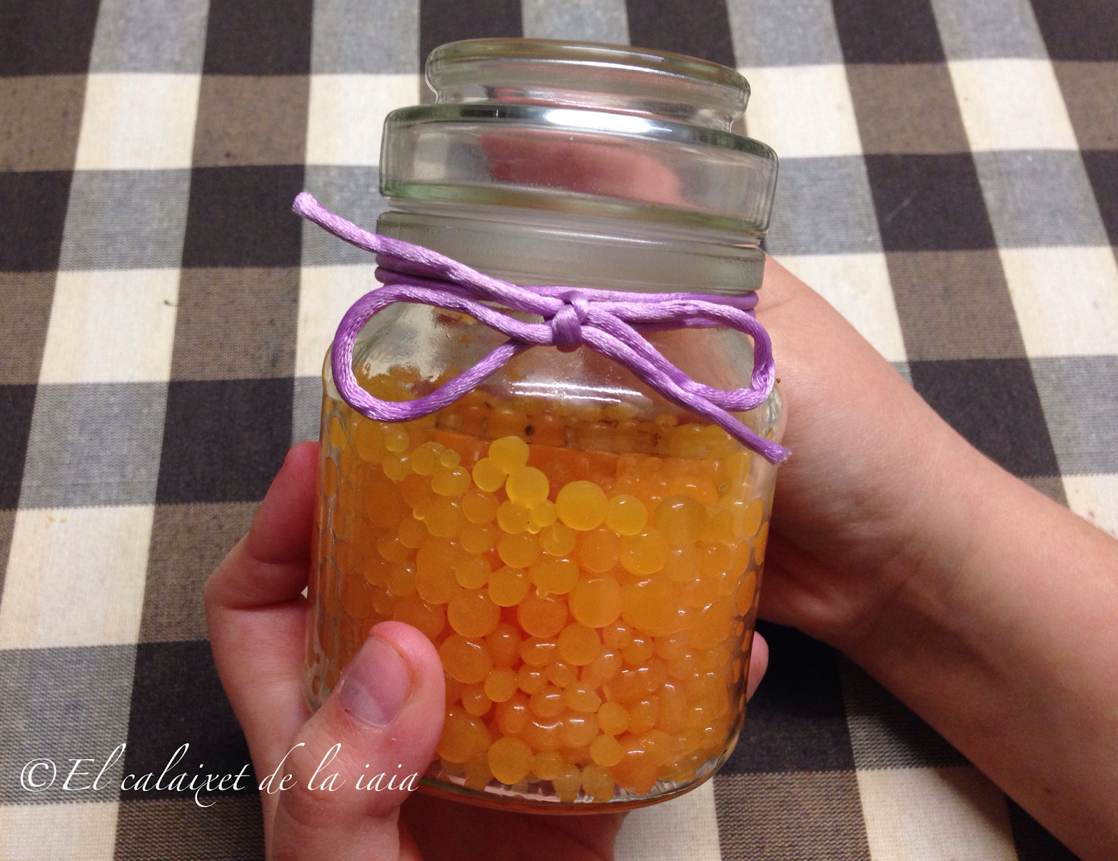 Las colocaremos en un bote hermético y listas para usar en nuestras recetas de dulce y salado. Para mantener nuestro falso caviar de mandarina, añadiremos el zumo de una naranja y mantendremos en el frigo, no puedo deciros durante cuanto tiempo, porque en casa vuela rápido ya que las comemos incluso con el yogur blanco.