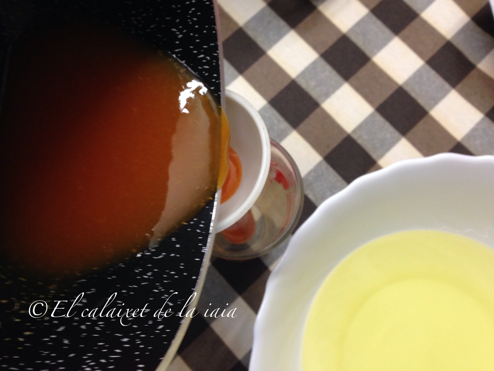 Aunque tengo que avisaros que aquí no vais a encontrar ninguna preparación de chef, cocina molecular, esferificaciones, ni nada de ese tipo, sólo soy una iaia a la que gusta cocinar, y comparto lo poco que sé, por si a alguien le resulta de ayuda. Preparamos un cazo, en el que volcaremos el zumo