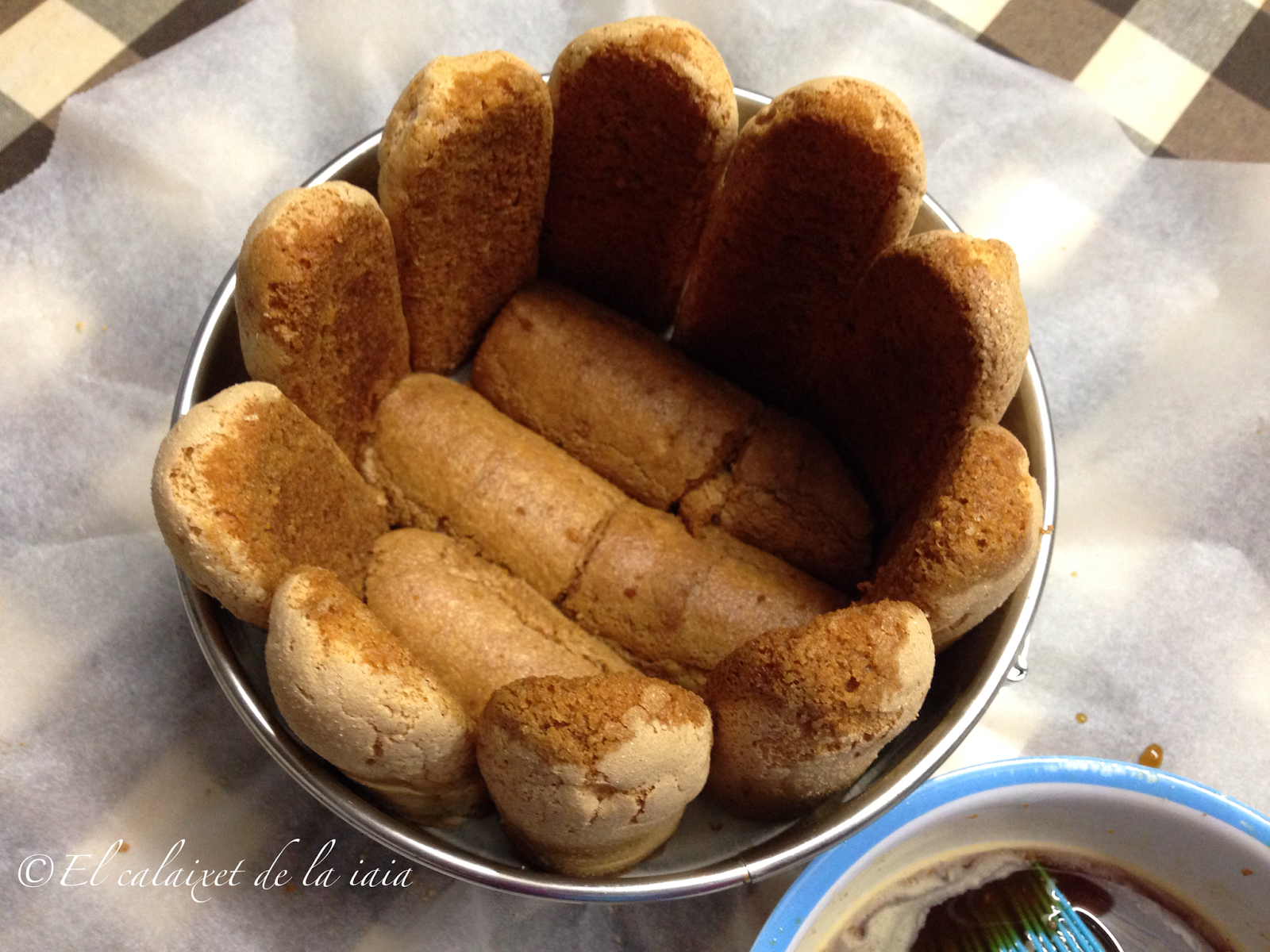 añadiremos otra capa de bizcochos pincelados de café
