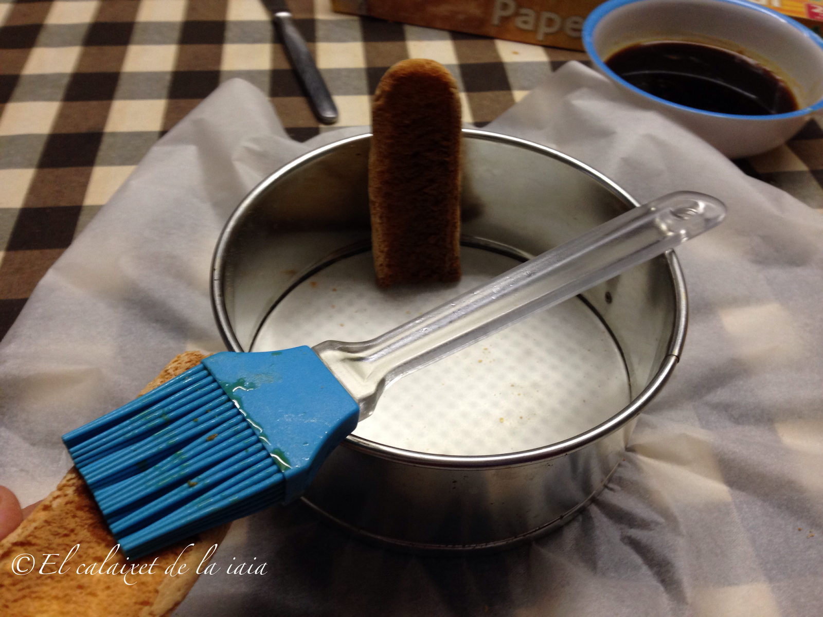 e iremos pincelando con el café borrachito nuestro bizcochos, sin empaparlos demasiado para que no queden excesivamente blandos.