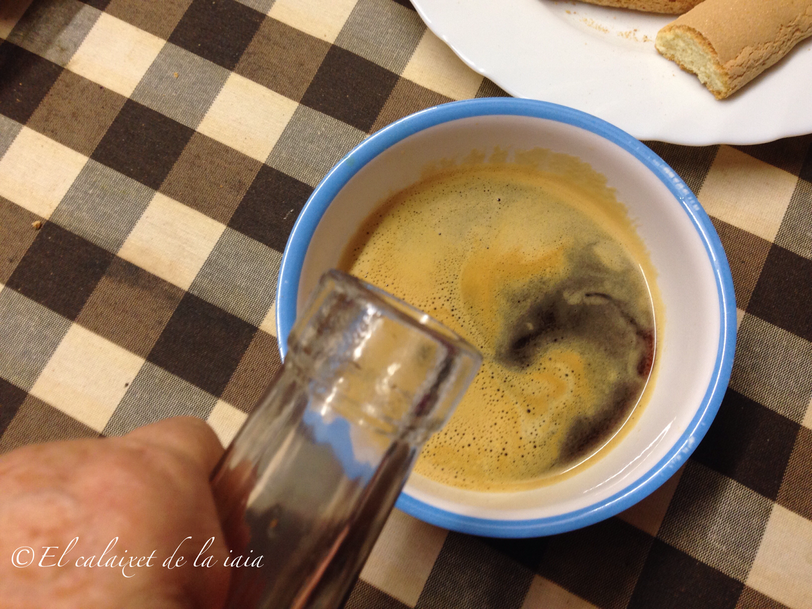 Azucaramos o NO, el café expreso a nuestro gusto, si NO lo van a comer niños, añadiremos otro chupito de nuestro licor de naranja, limón o mandarina casero, Cointreau, o brandy (recordad evaporar el alcohol, si lo van a comer niños o intolerantes)