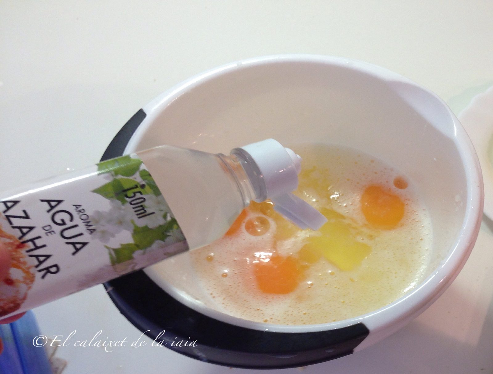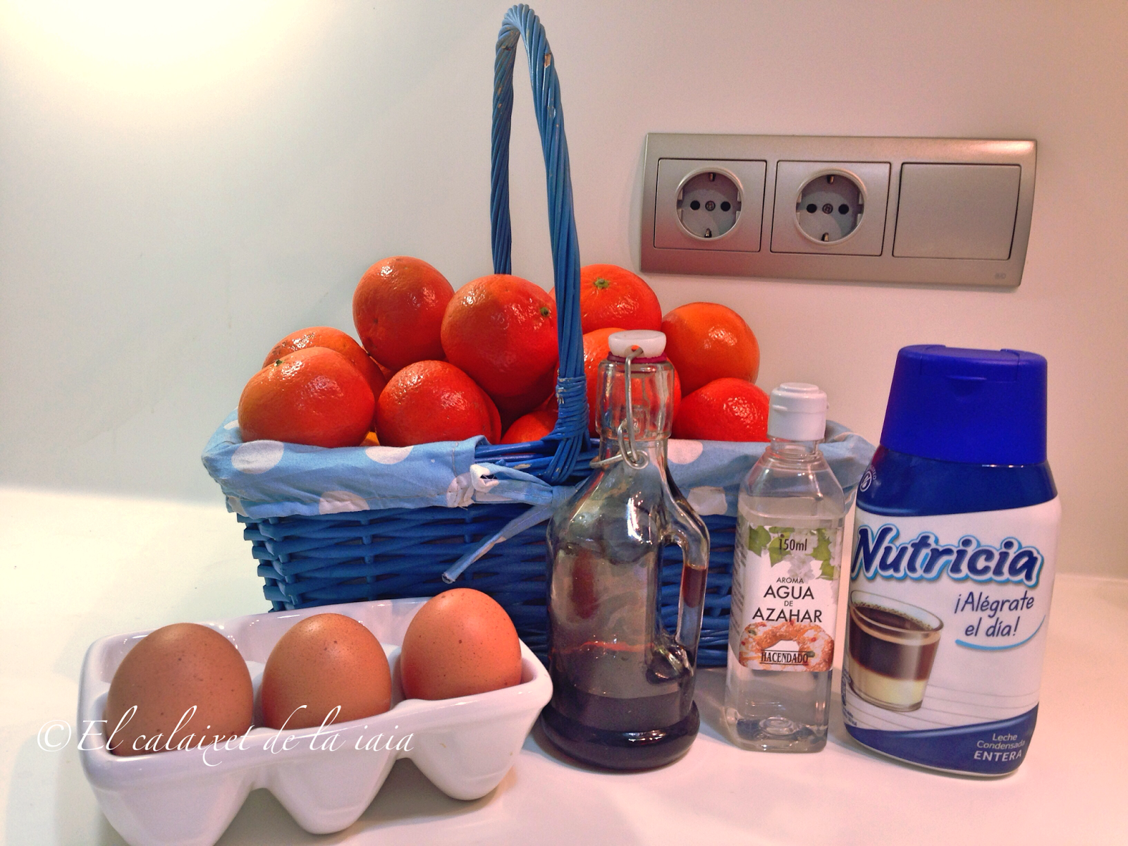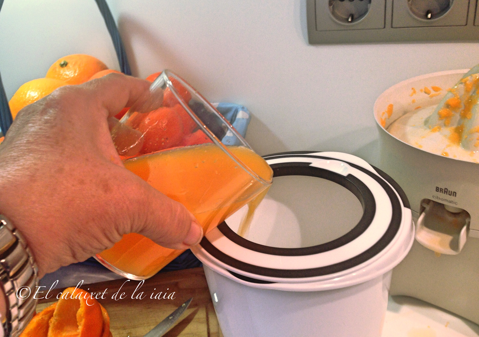 sacamos el zumo de las mandarinas necesarias para rellenar nuestro bote o botellín de leche condensada, ya que hay que poner la misma cantidad de zumo de mandarina que de leche condensada, y utilizo el recipiente como medida