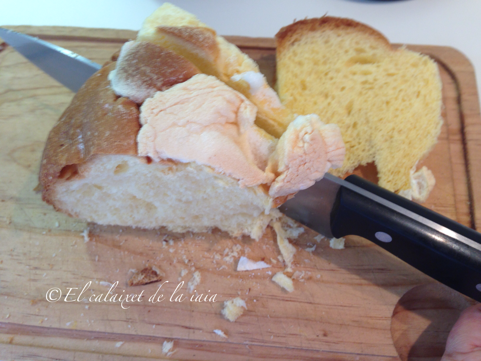 «Refrany; Panquemao, pa dormit, panou, pit de sultana, coca d’aire …tots per a mi, cap per al frare» Panquemao, pan dormido, panou, pecho de sultana, coca de aire… todos para mi, ninguno para el fraile.