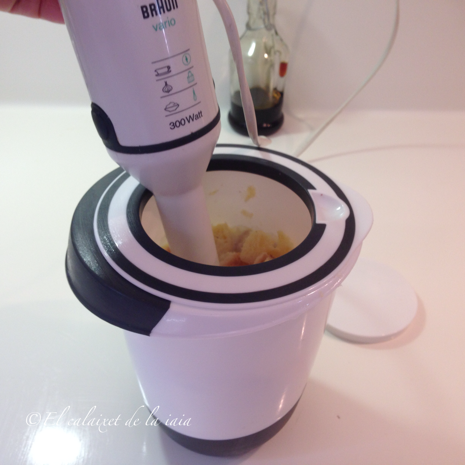 - y lo añadimos a los ingredientes que ya tenemos en el vaso batidor