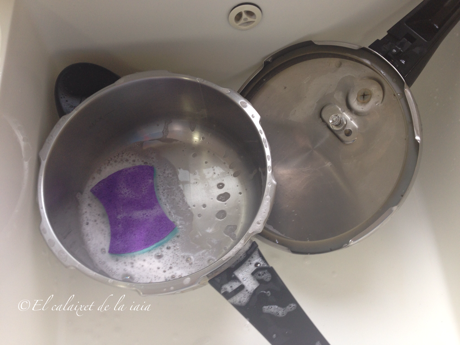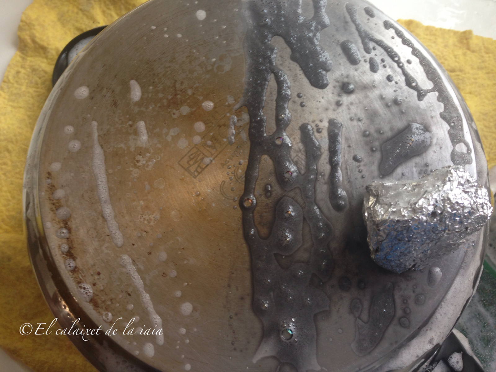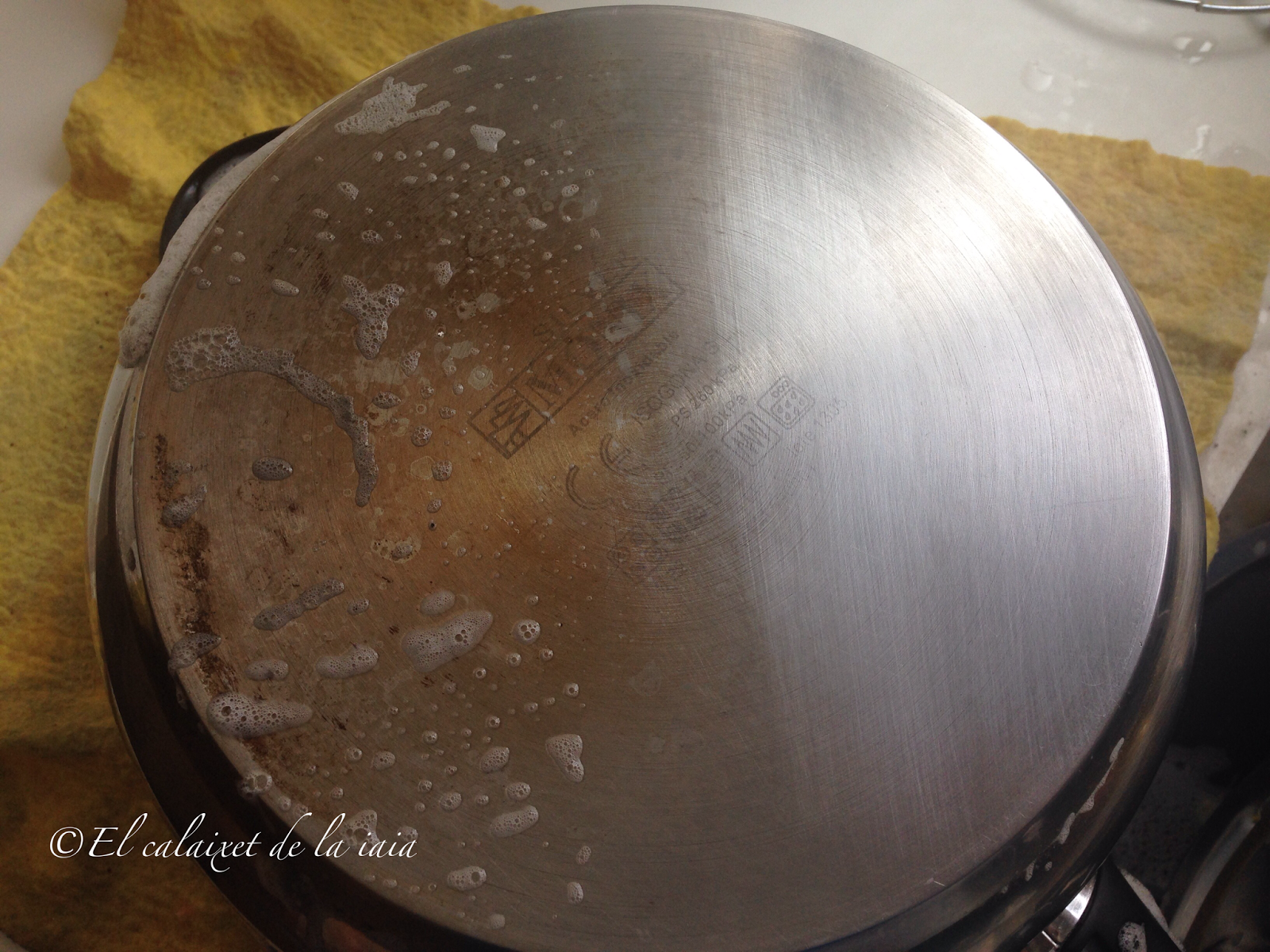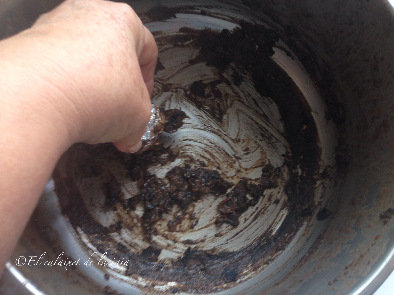 Seguro que si se nos ha quemado el interior de la olla irremendiablemente, también se hará quedado el culo de la misma…..así que frotaremos también allí de la misma manera