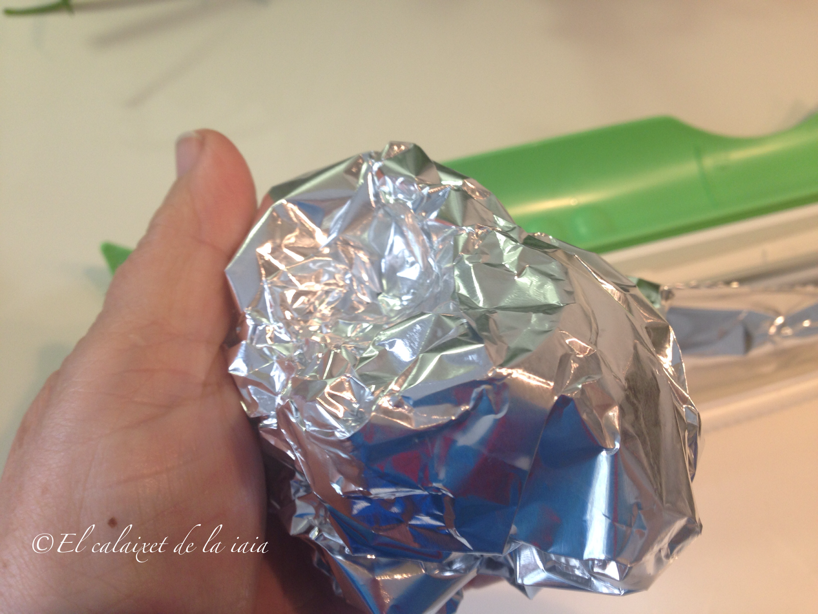 cuando se estropee la bola por los enjuagues y los frotes, la cubriremos con una trozo de papel de aluminio nuevo