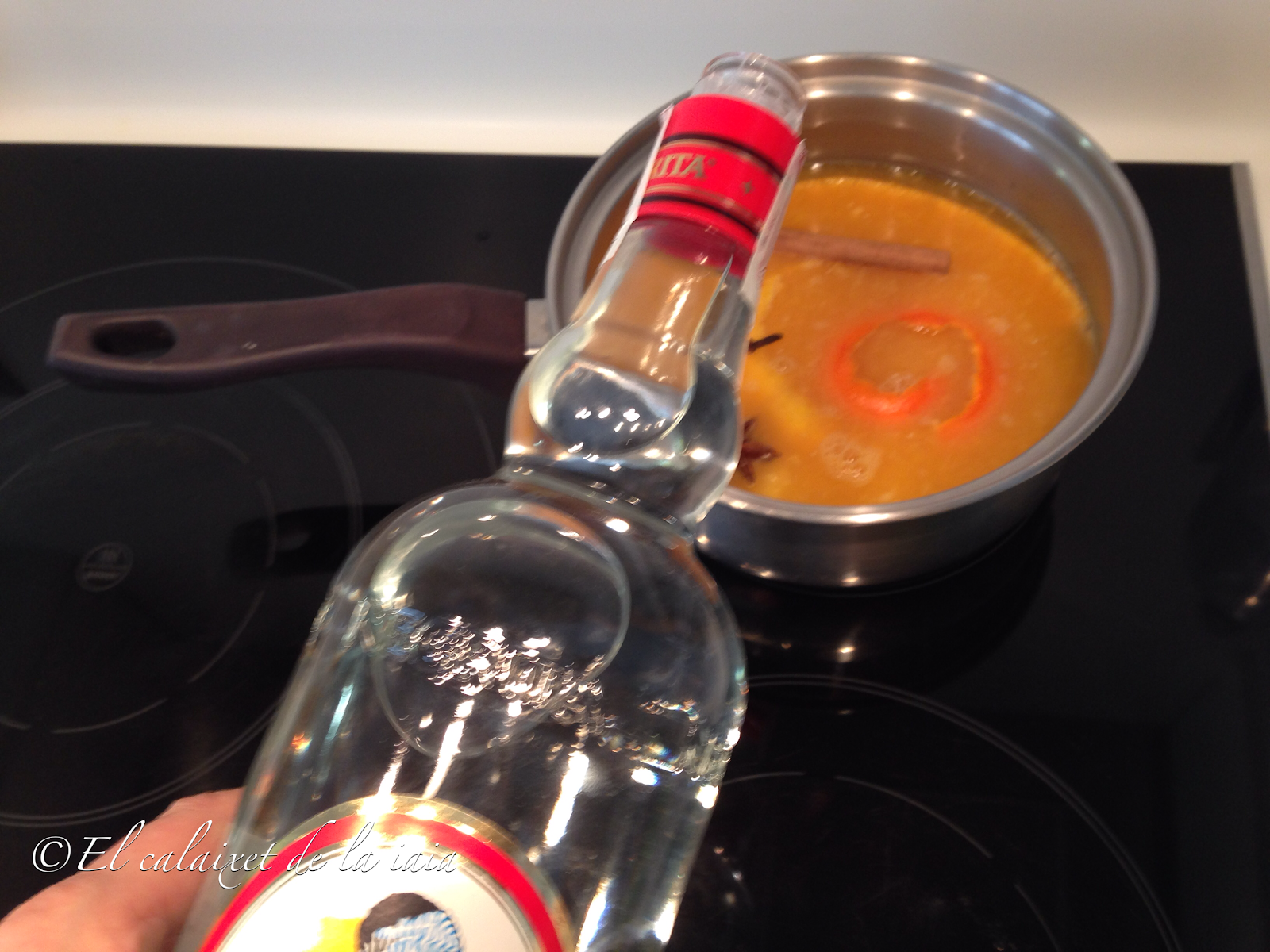 Comenzaremos lavando una pieza de cada cítrico y recortando unos trozos de piel de cada uno, procurando cojer el mínimo de blanco, el albedo, porque amarga, hemos de cojer siempre el flavedo, que es la parte que tienen color y que posee los aceites esenciales del aroma. Esto que os cuento, es el fruto de las muchísimas tardes de verano pasadas con mi iaiao Antoniet, Toni de Gallò entre los bancales…