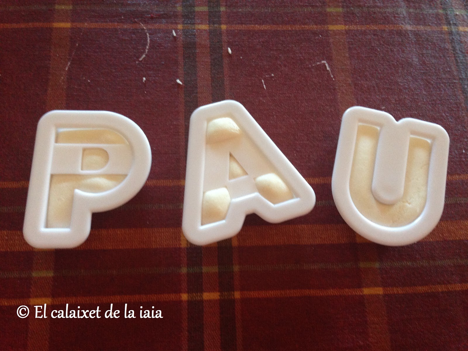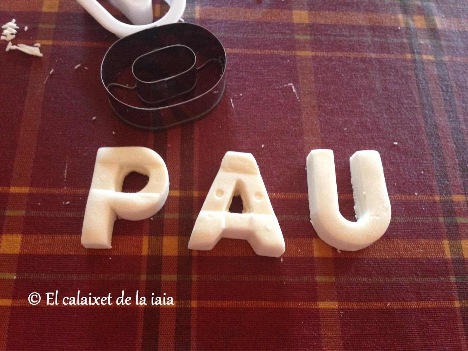 Bueno pues ésta entrada va de nombres. Quise hacer de sorpresa, unas letras para la tarta de cumple de mi pequeño y como a él le gustan las cosas muuuuy sencillas,(tanto que incluso quitó la blonda de papel que le puse a la tarta 😉 no las adorné con nada.