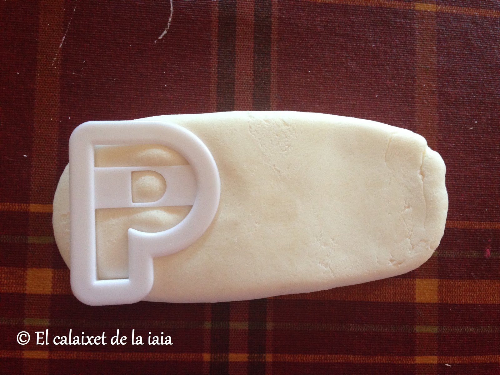 con las letras blandas y recién hechas, pasaremos con cuidado la aguja por las letras para formar el orificio y poder pasarlas una vez secas. colocaremos las letras sobre una rejilla y al horno precalentado a 150º donde las dejaremos unos 30 minutos o hasta que las toquemos y estén endurecidas.