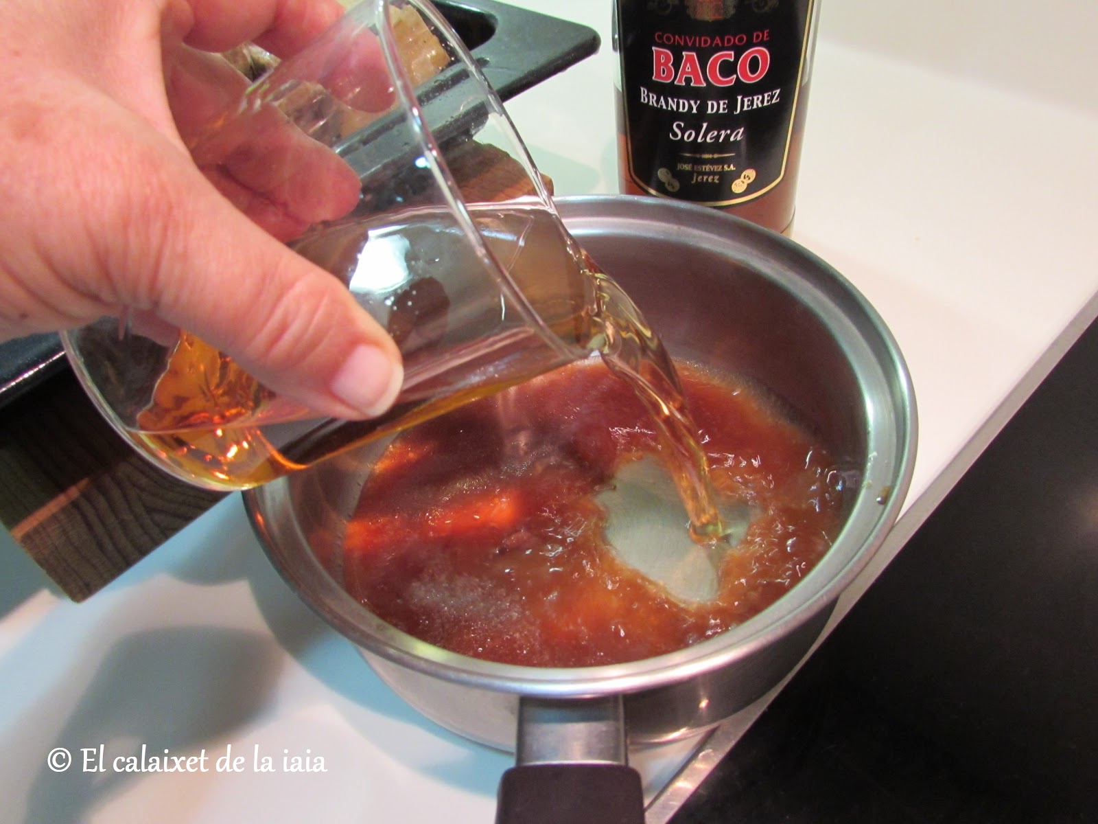 Transcurridos los 5 minutos, rociamos la carne con el contenido del cazo
